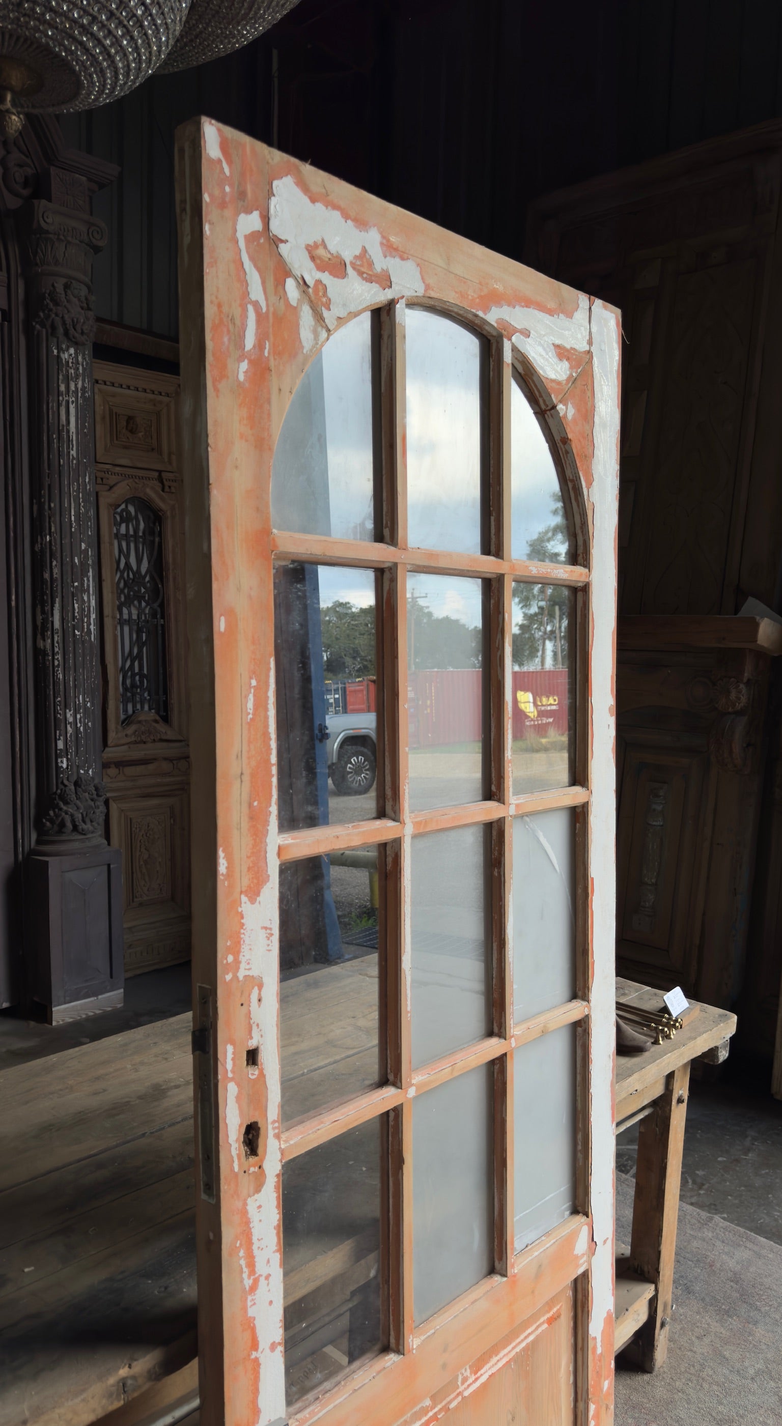 12 Lite Arched Antique Glass Single Door - 32.25x83.5 - L156