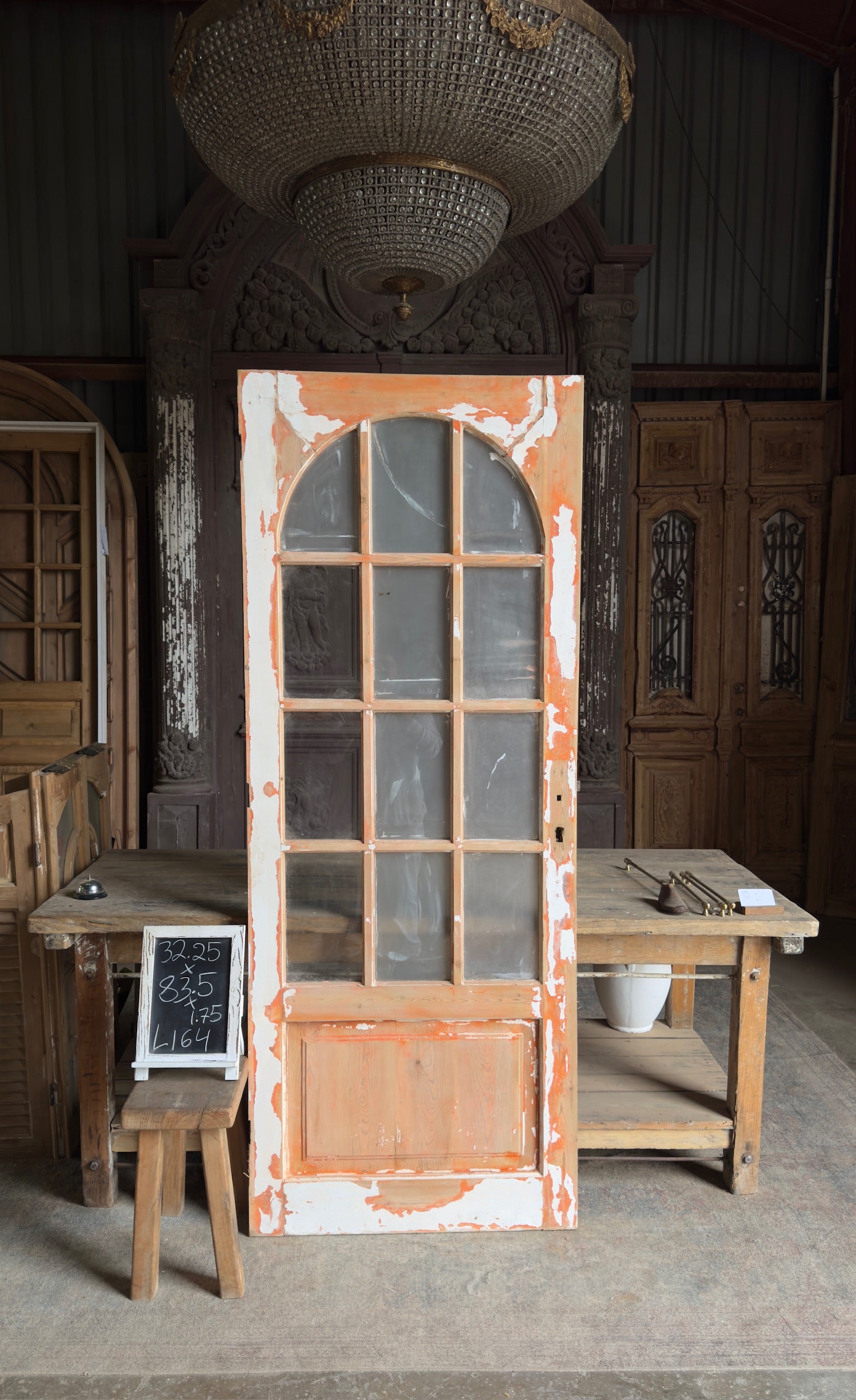 12 Lite Arched Antique Glass Single Door - 32.25x83.5 - L164