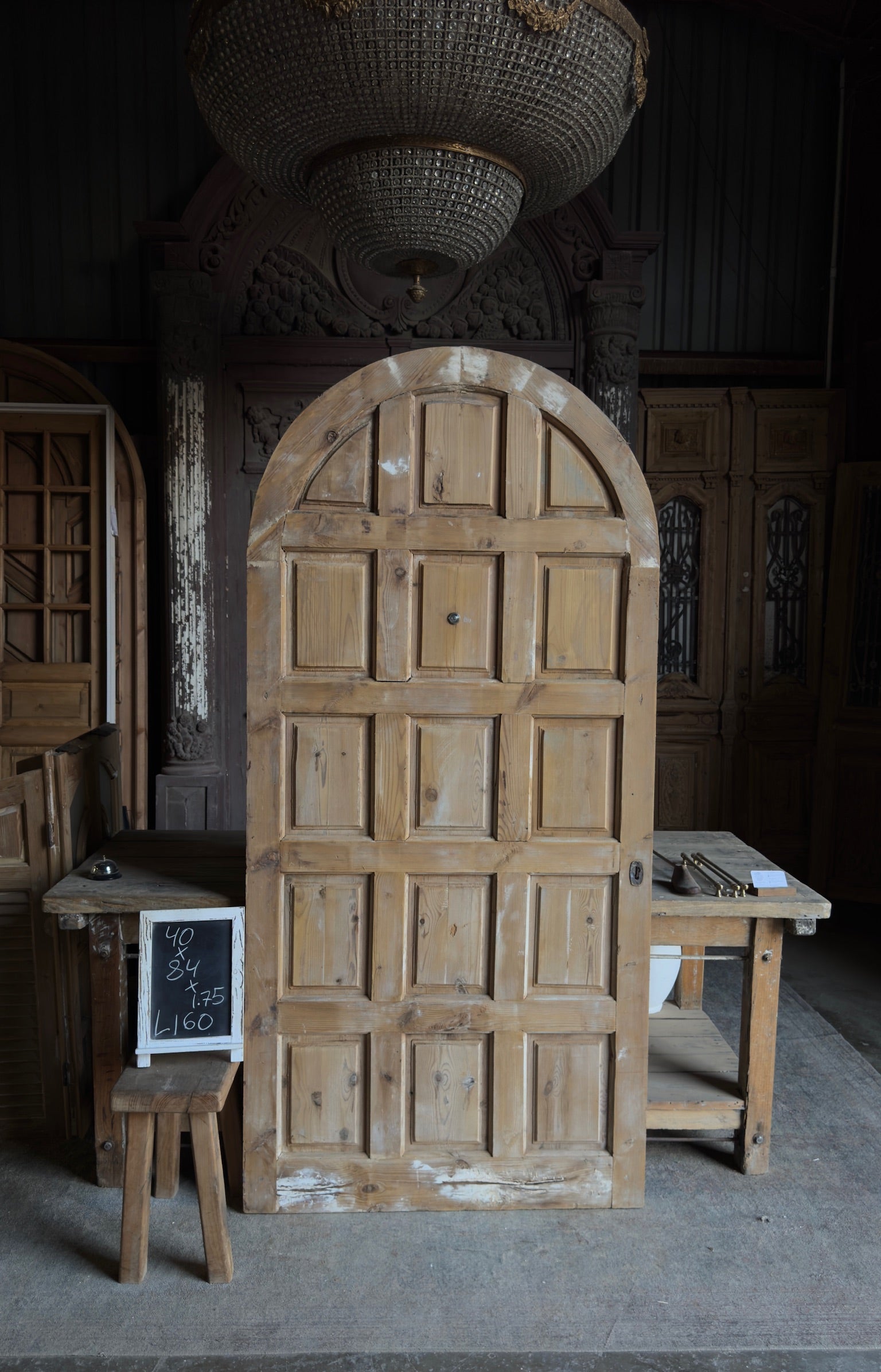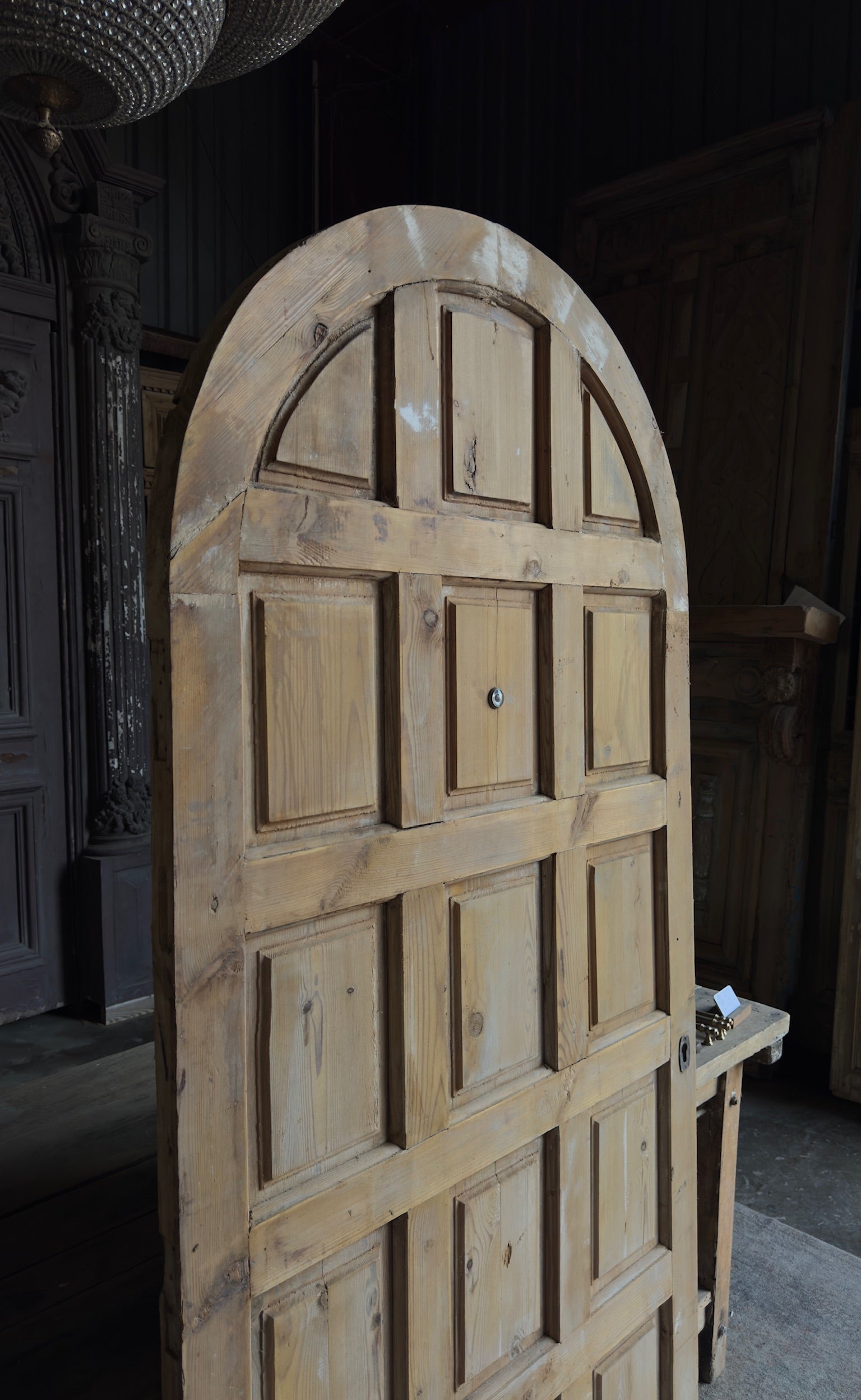 15 Panel Antique Solid Single Arched Door - 40x84 - L160