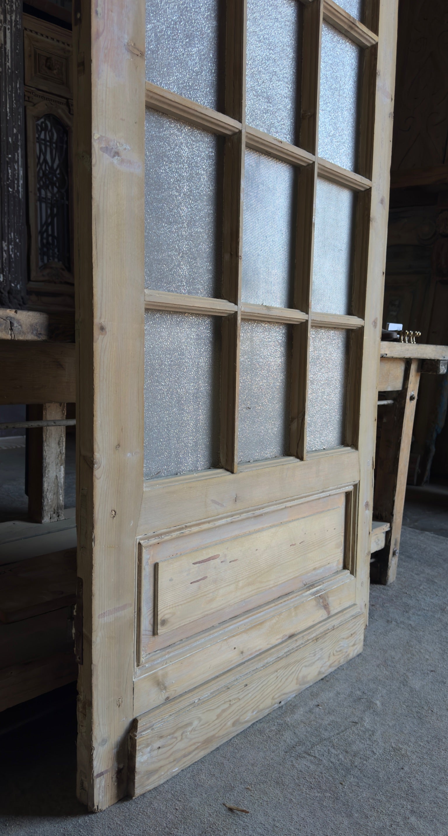 Elevate your home with the timeless elegance of authentic antique Baltic Pine doors sourced from the heart of the Mediterranean. Each door, hand-carved in the 19th Century and adorned with intricate iron and glass detailing, brings a distinct blend of vintage charm, French country décor sensibilities, and storied history into your space.