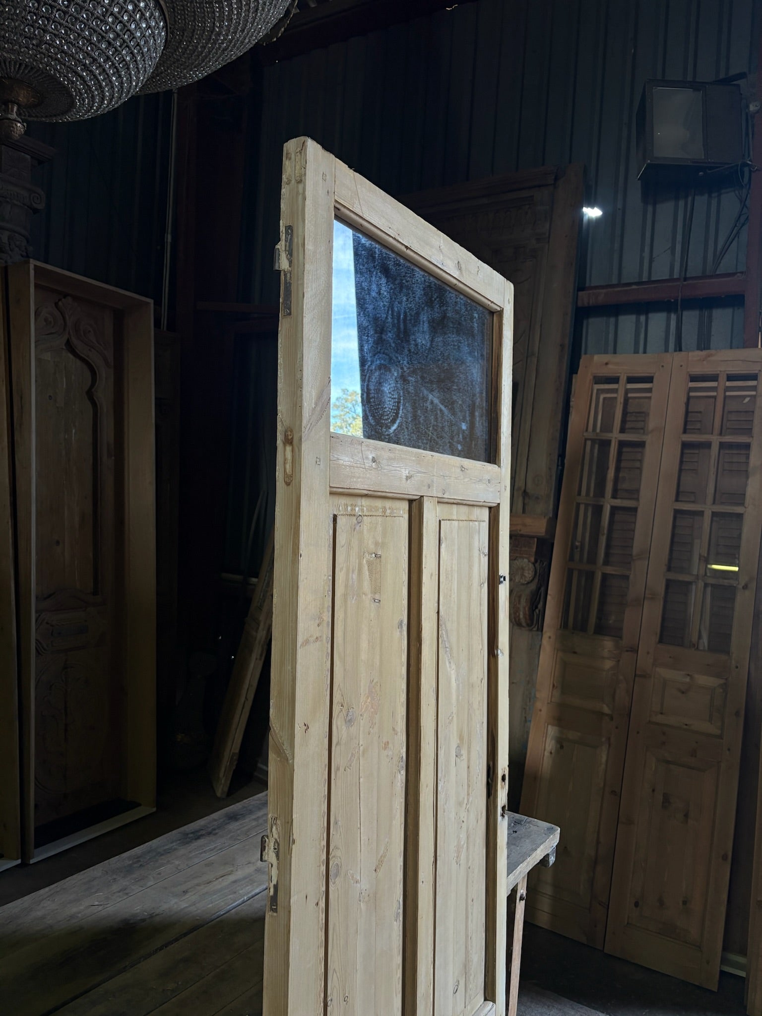 Elevate your home with the timeless elegance of authentic antique Baltic Pine doors sourced from the heart of the Mediterranean. Each door, hand-carved in the 19th Century and adorned with intricate iron and glass detailing, brings a distinct blend of vintage charm, French country décor sensibilities, and storied history into your space.