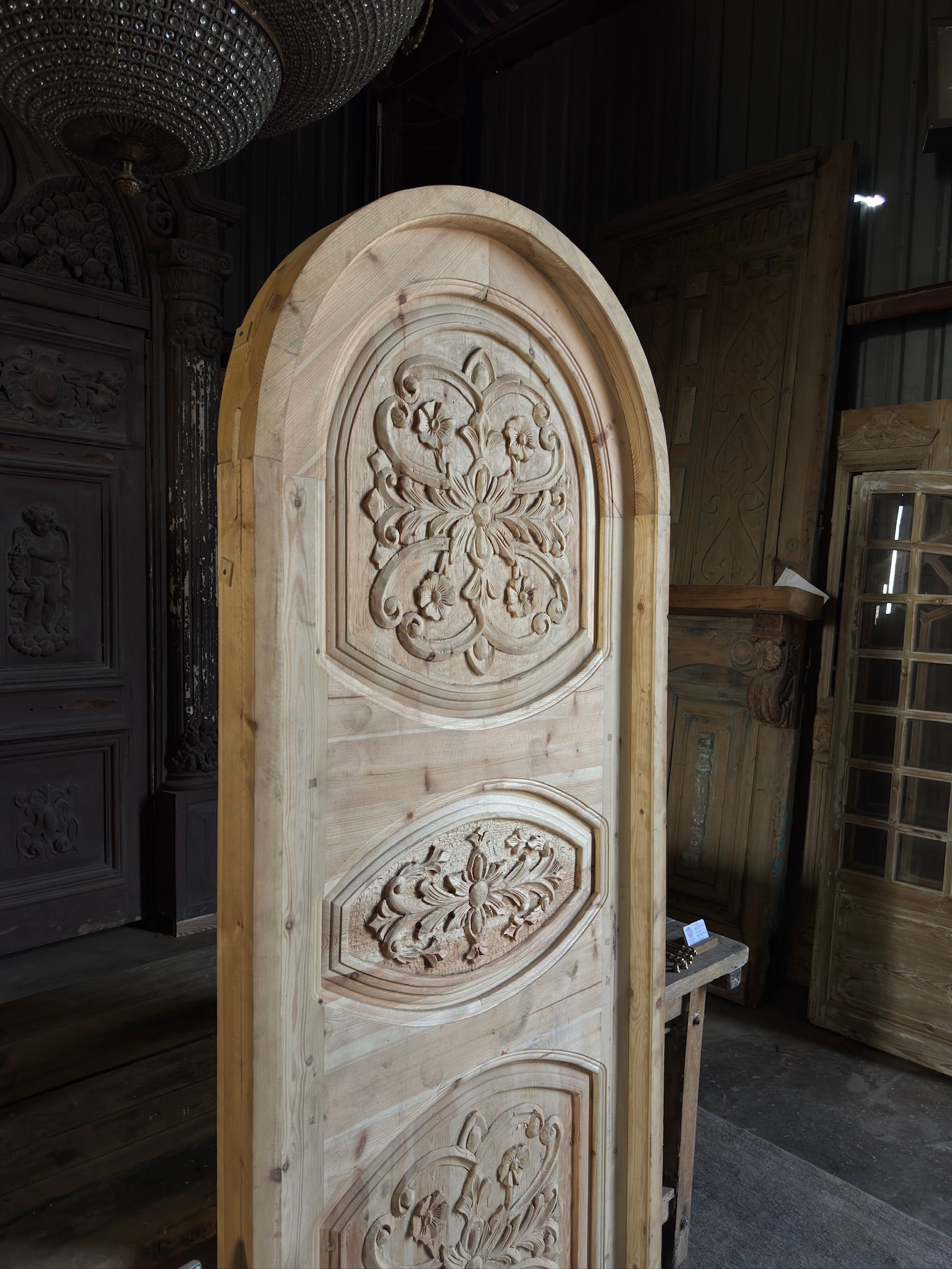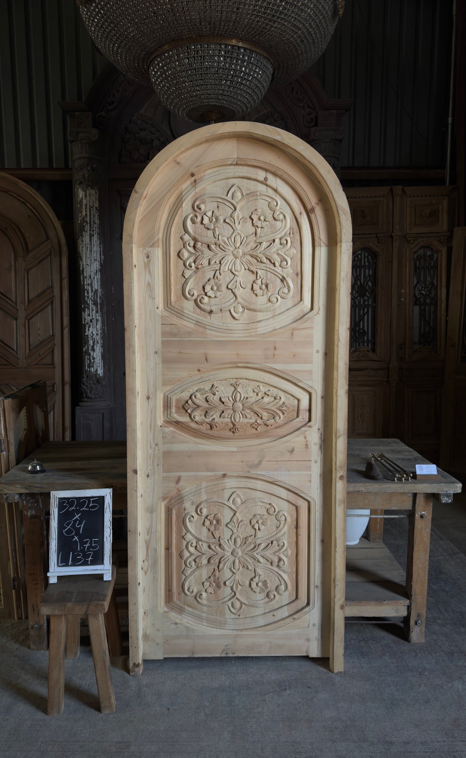 Handcrafted Carved Arched Single Door - 32x84 - L137