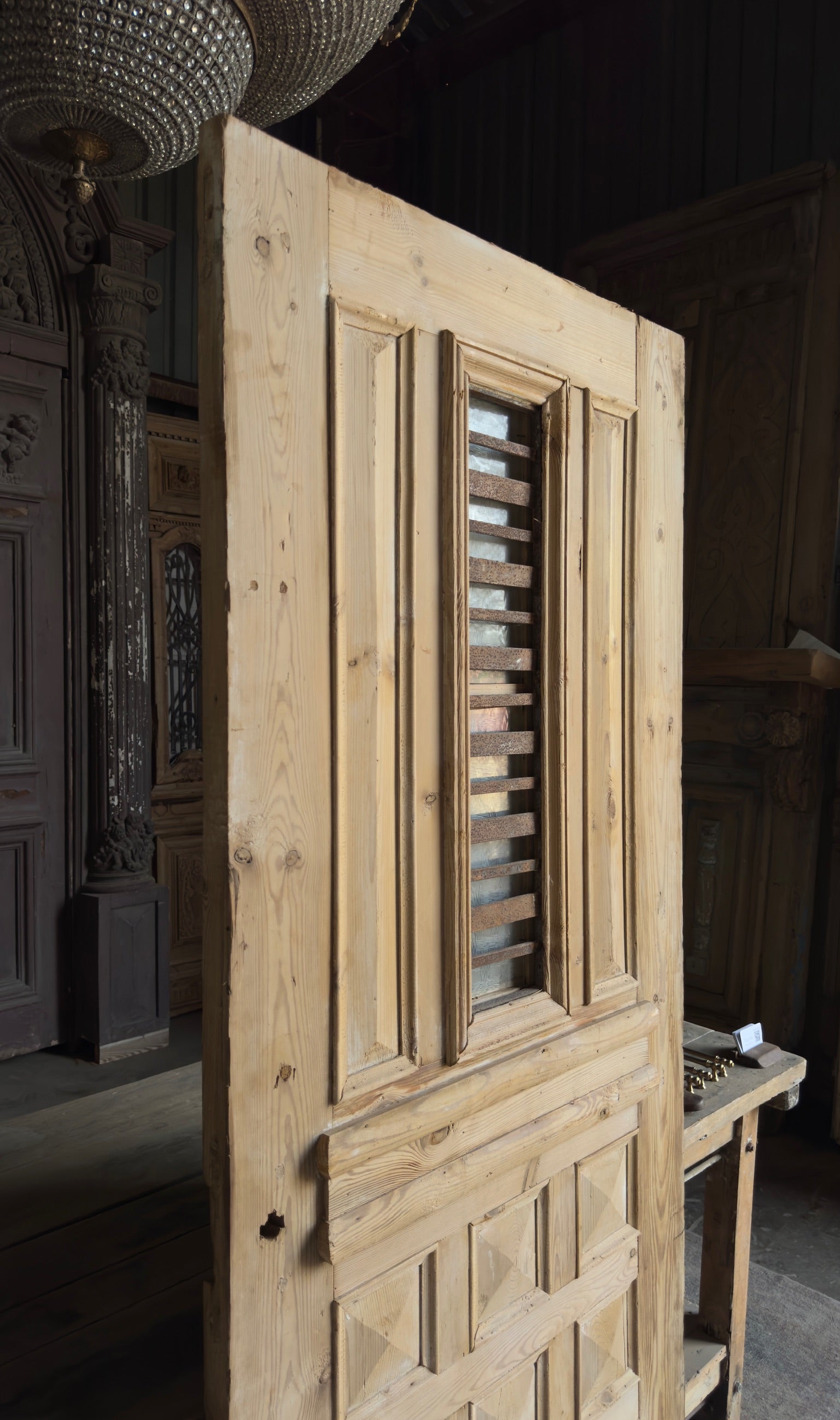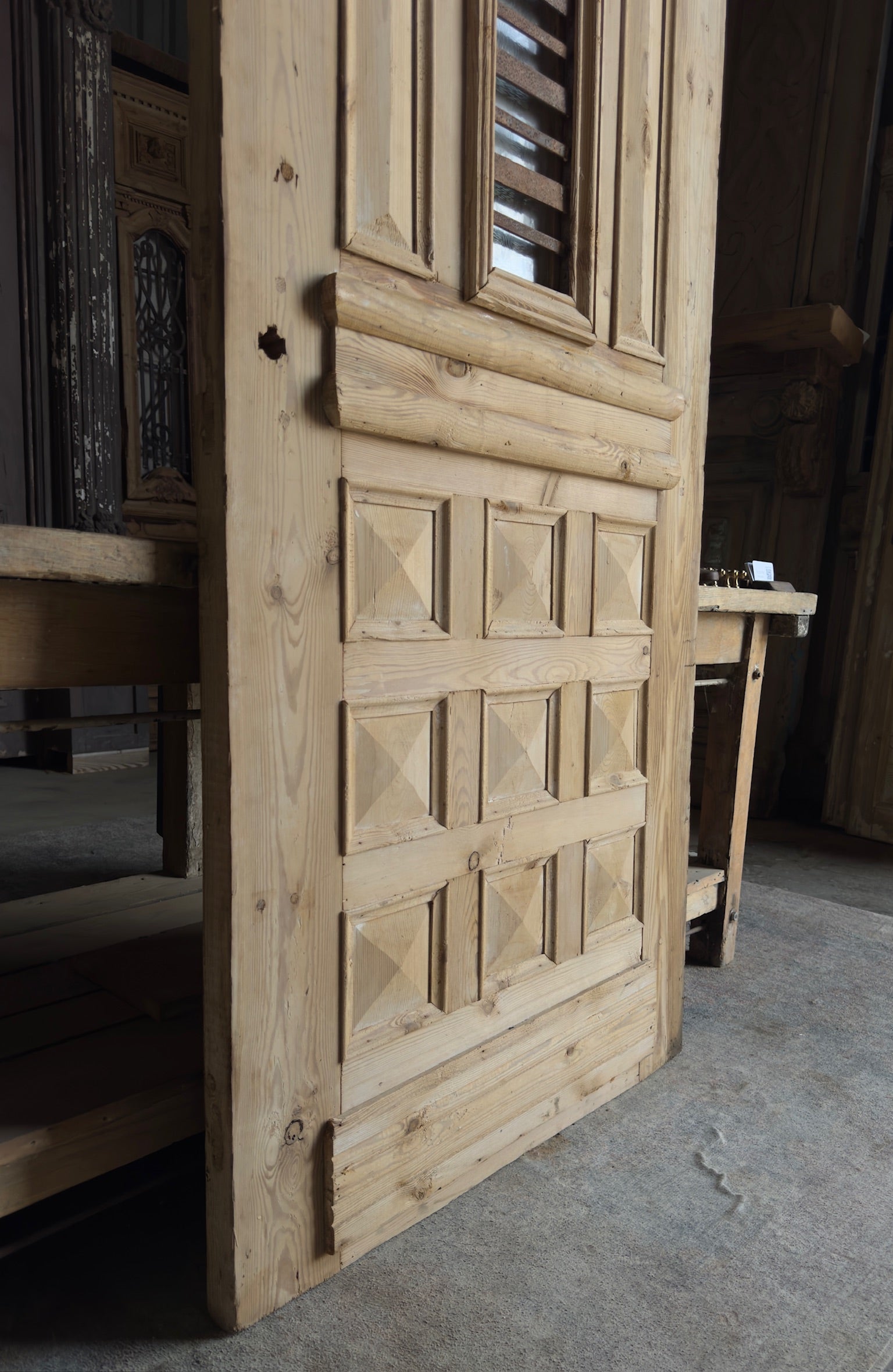 Elevate your home with the timeless elegance of authentic antique Baltic Pine doors sourced from the heart of the Mediterranean. Each door, hand-carved in the 19th Century and adorned with intricate iron and glass detailing, brings a distinct blend of vintage charm, French country décor sensibilities, and storied history into your space.