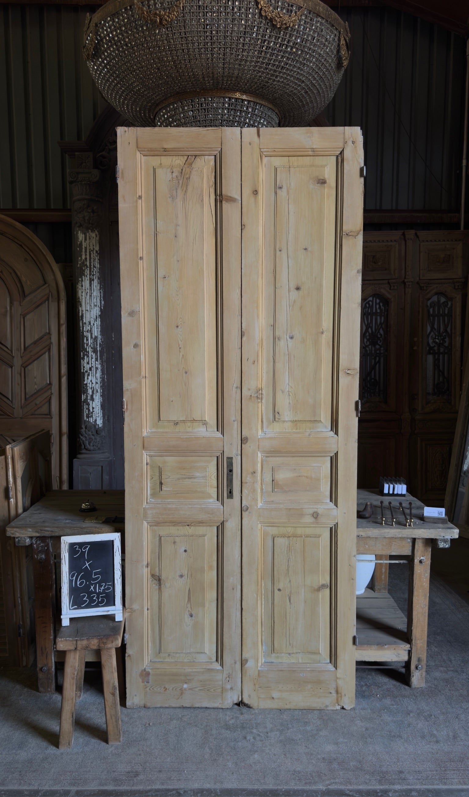 3 Panel Antique Solid French Doors - 39x96.5 - L335