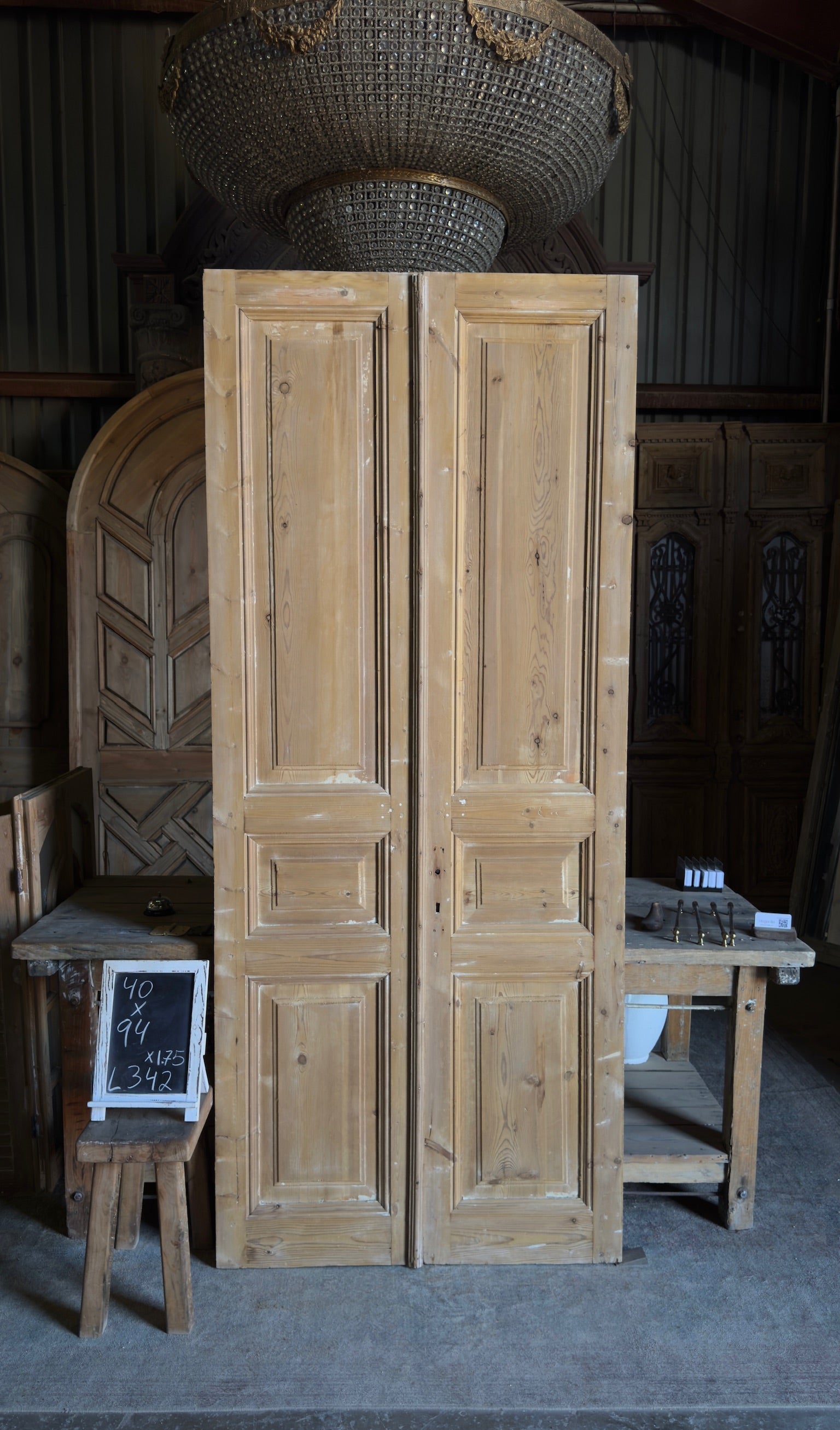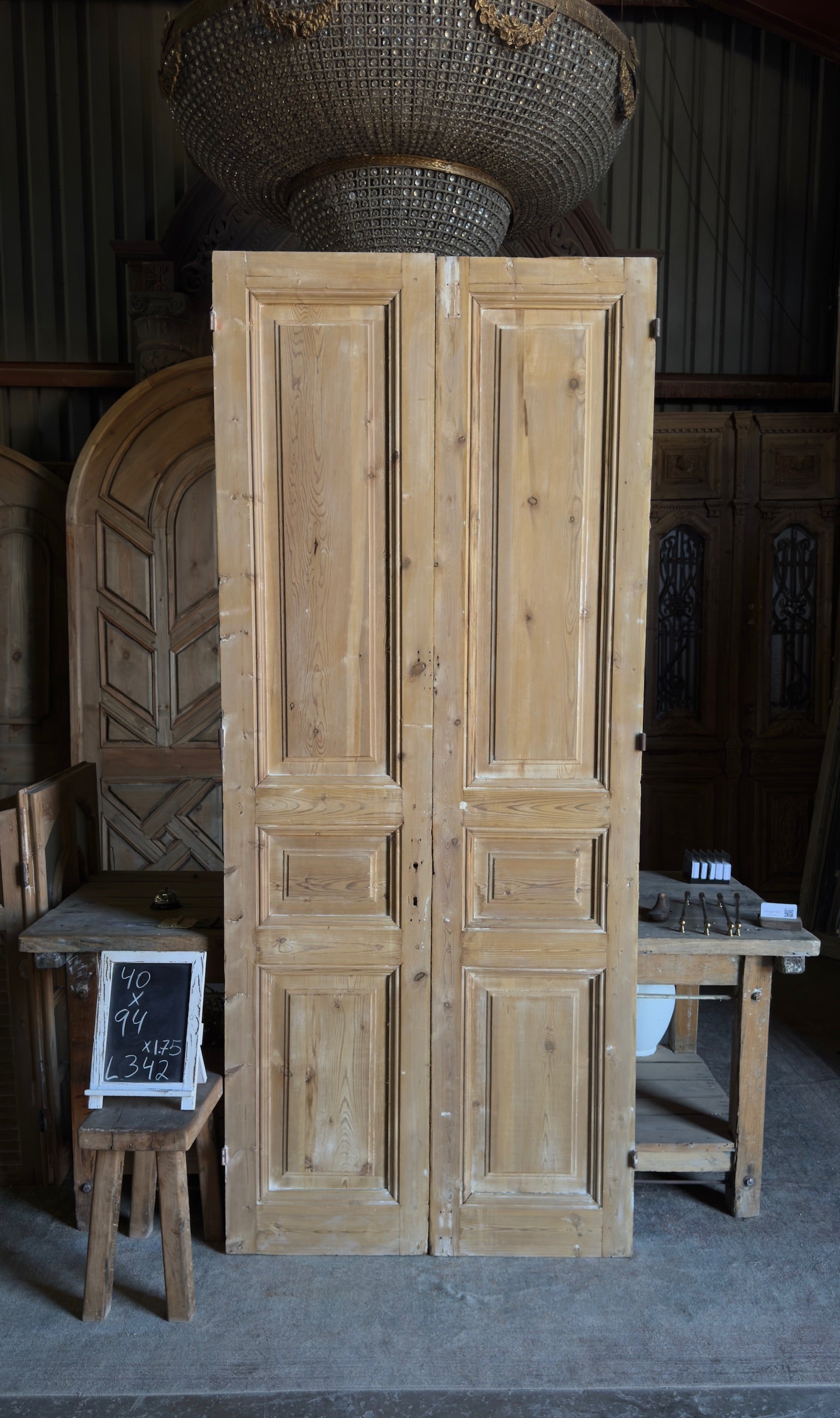 3 Panel Antique Solid French Doors - 40x94 - L342
