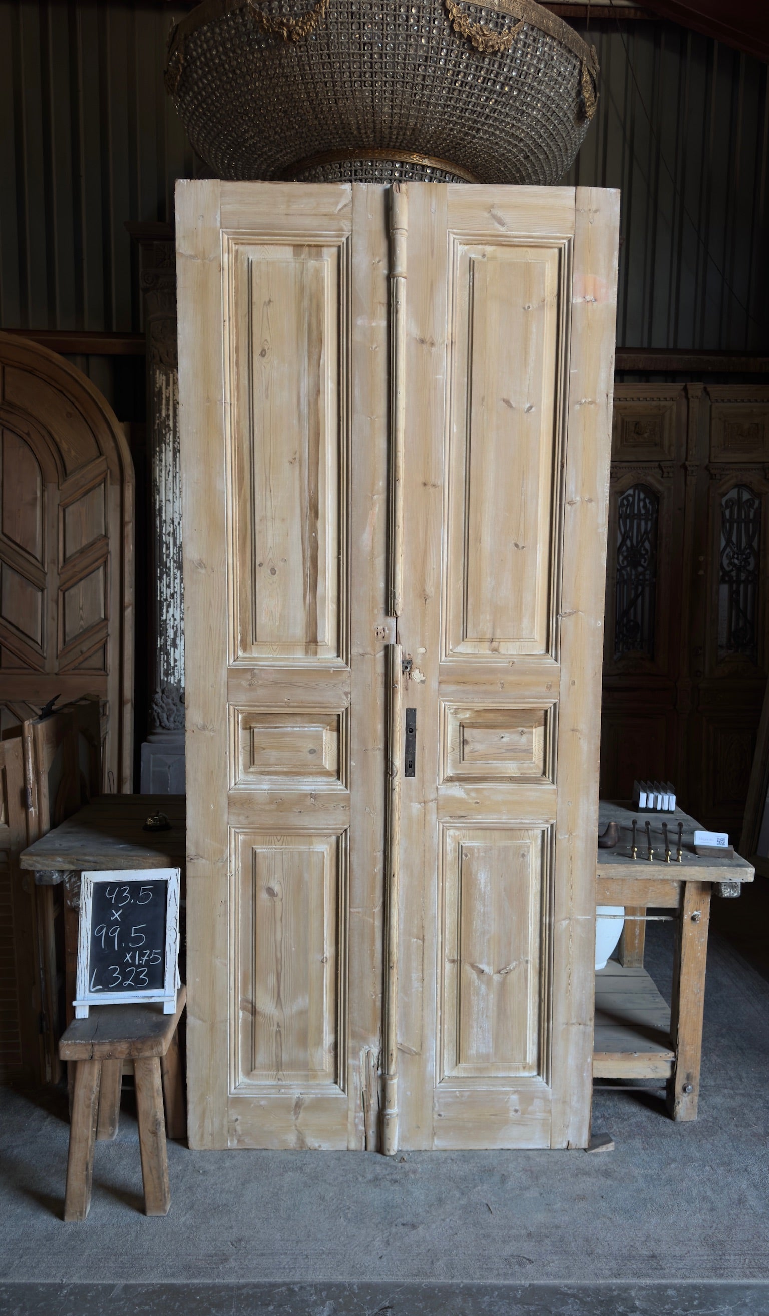 3 Panel Antique Solid French Doors - 43.5x99.5 - L323