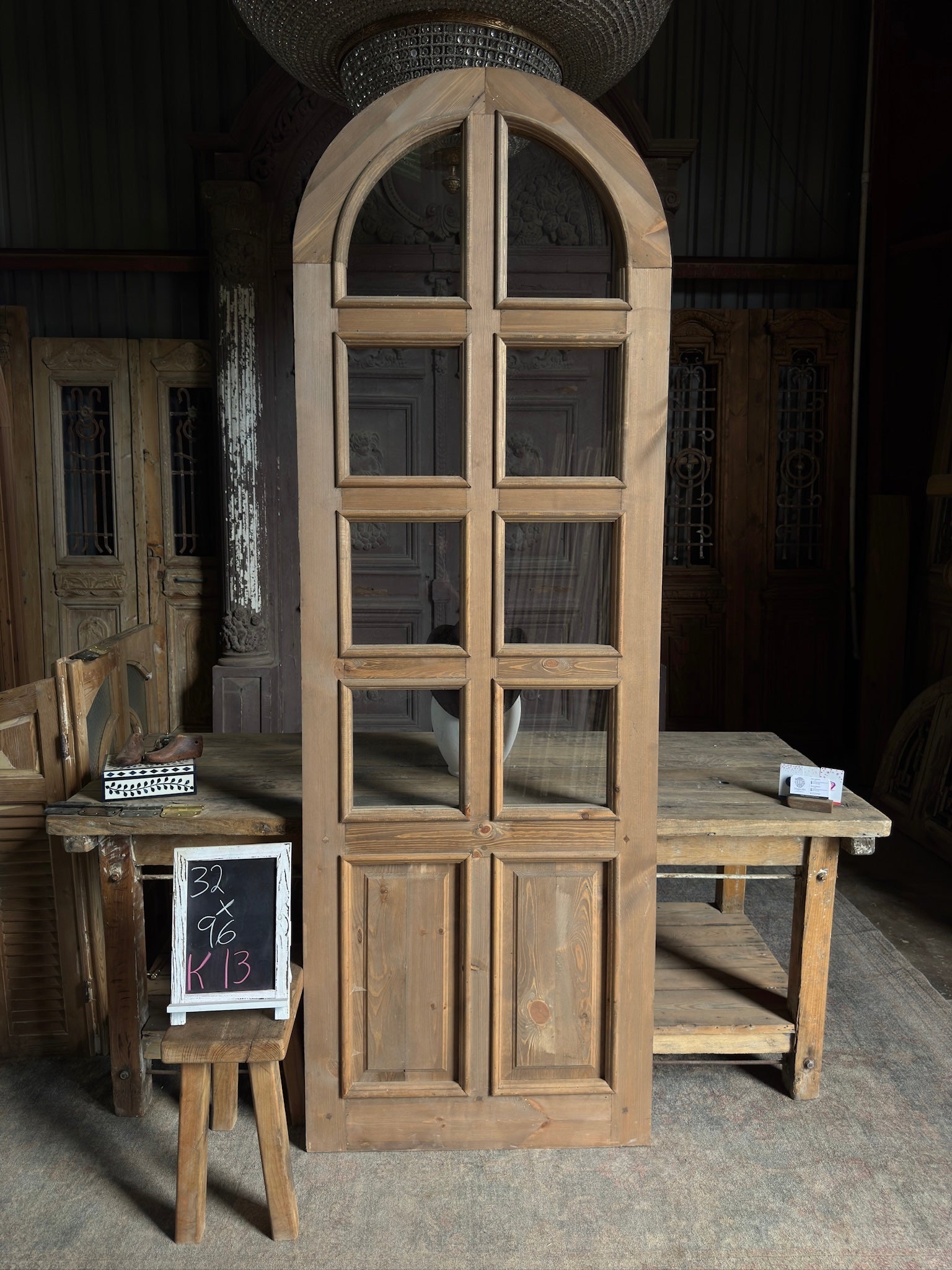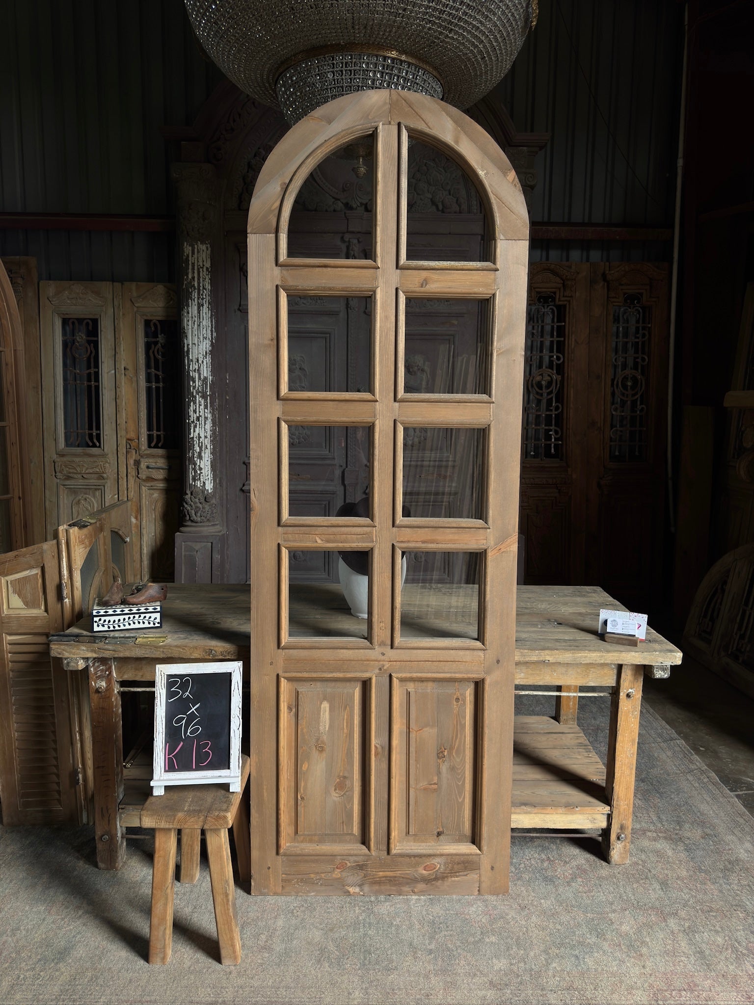 Handcrafted 8 Light Arched Single Glass Door - 32x96 K13