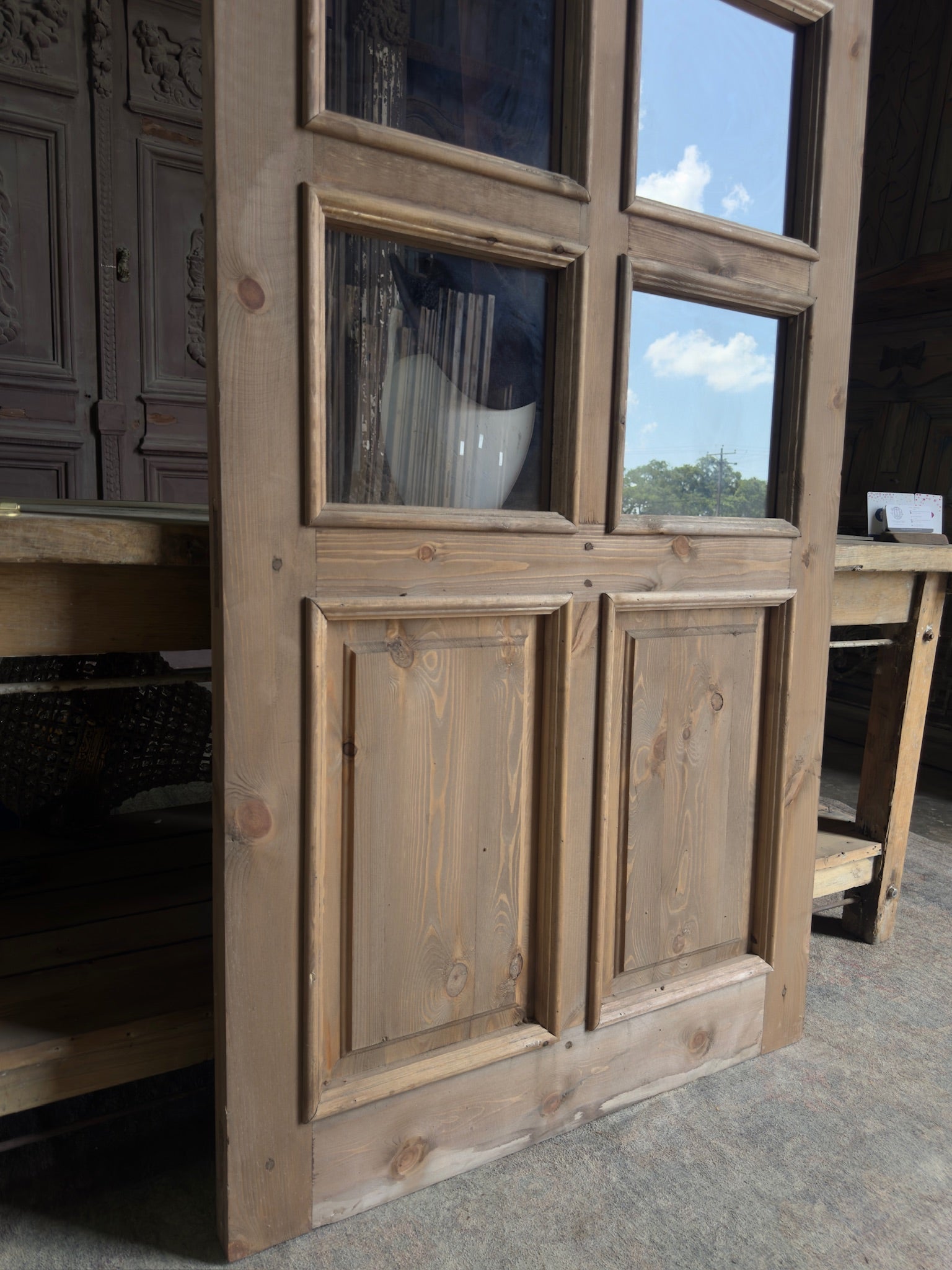 Our doors are sold as pictured and will require professional installation, as well as possible adjustments to fit your space. Glass may need to be sourced and installed separately. Additional photos are available upon request.