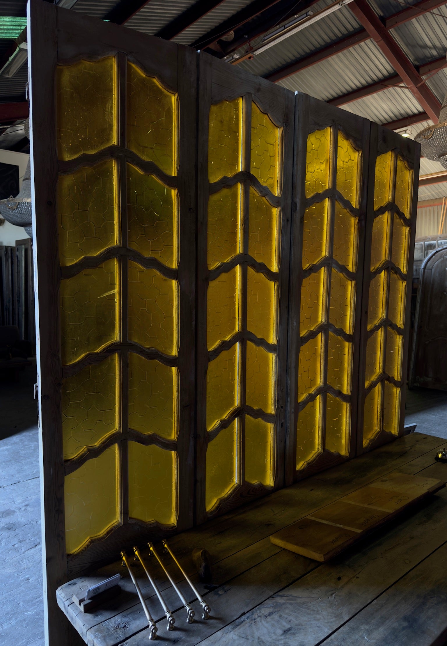 Our doors are sold as-is and will require professional installation, as well as possible adjustments to fit your space. Glass may need replacement or reinforcement. Additional photos are available upon request.