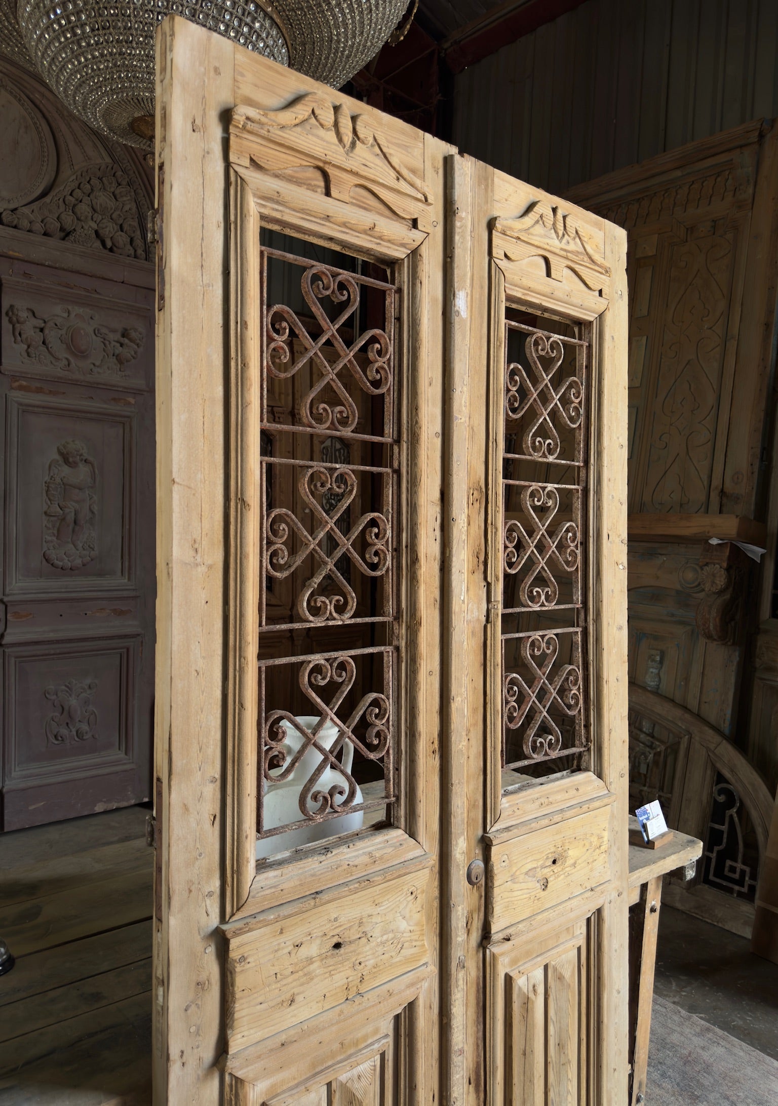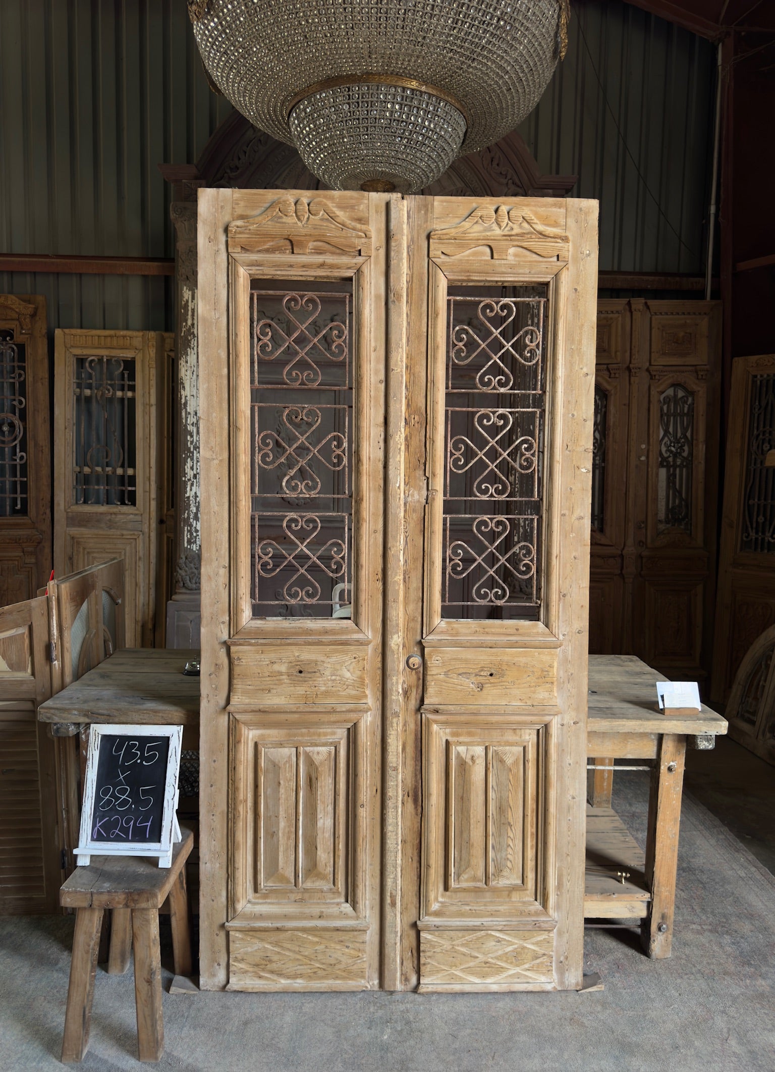 Elevate your home with the timeless elegance of authentic antique Baltic Pine doors sourced from the heart of the Mediterranean. Each door, hand-carved in the 19th Century and adorned with intricate iron and glass detailing, brings a distinct blend of vintage charm, French country décor sensibilities, and storied history into your space.