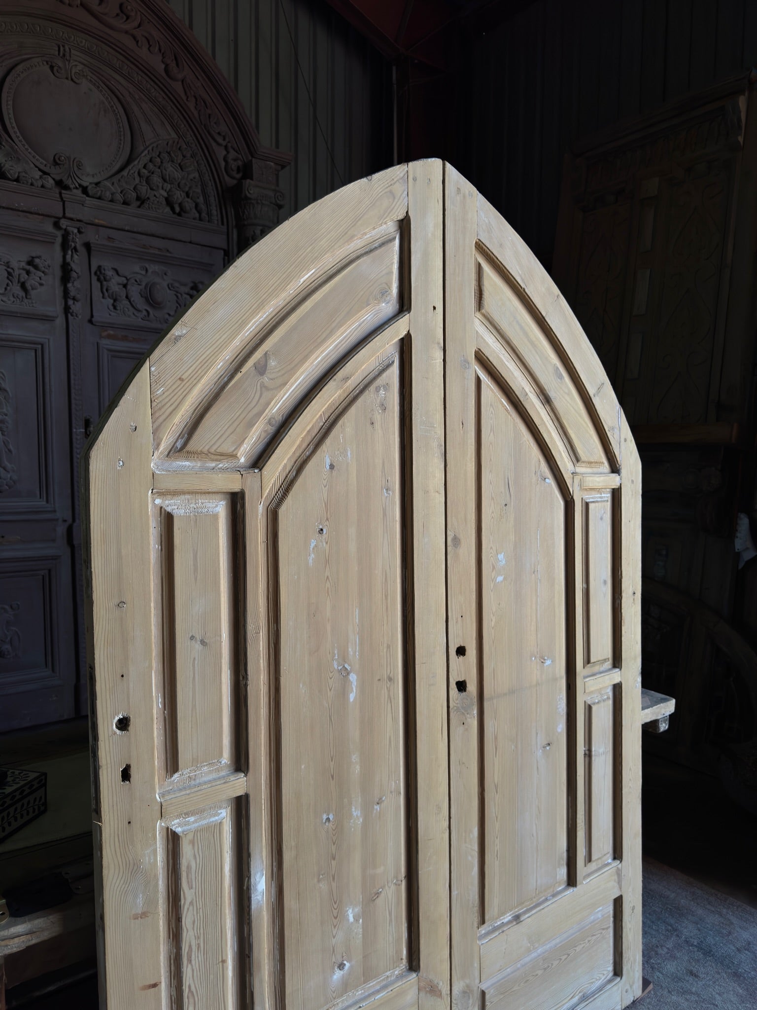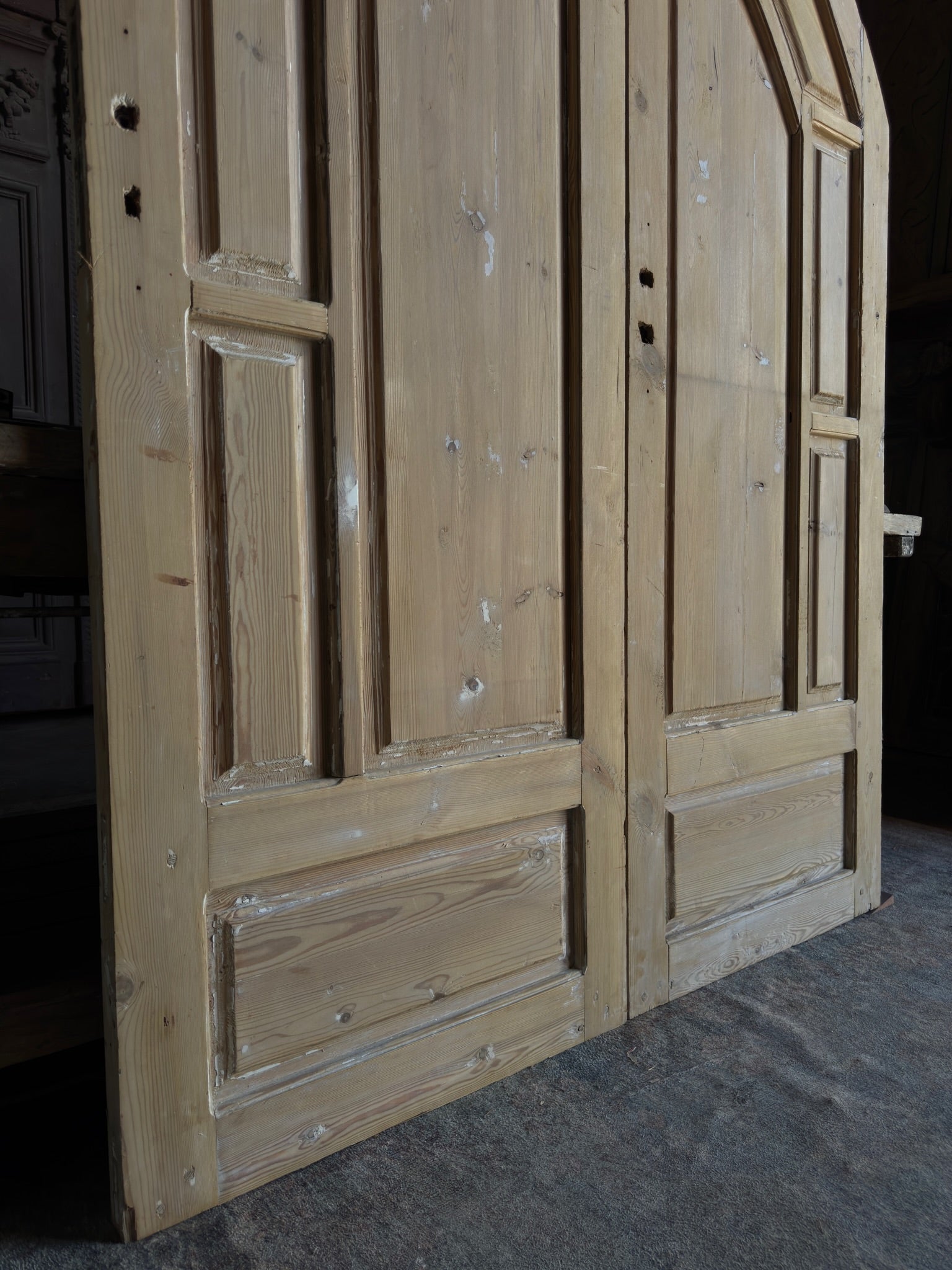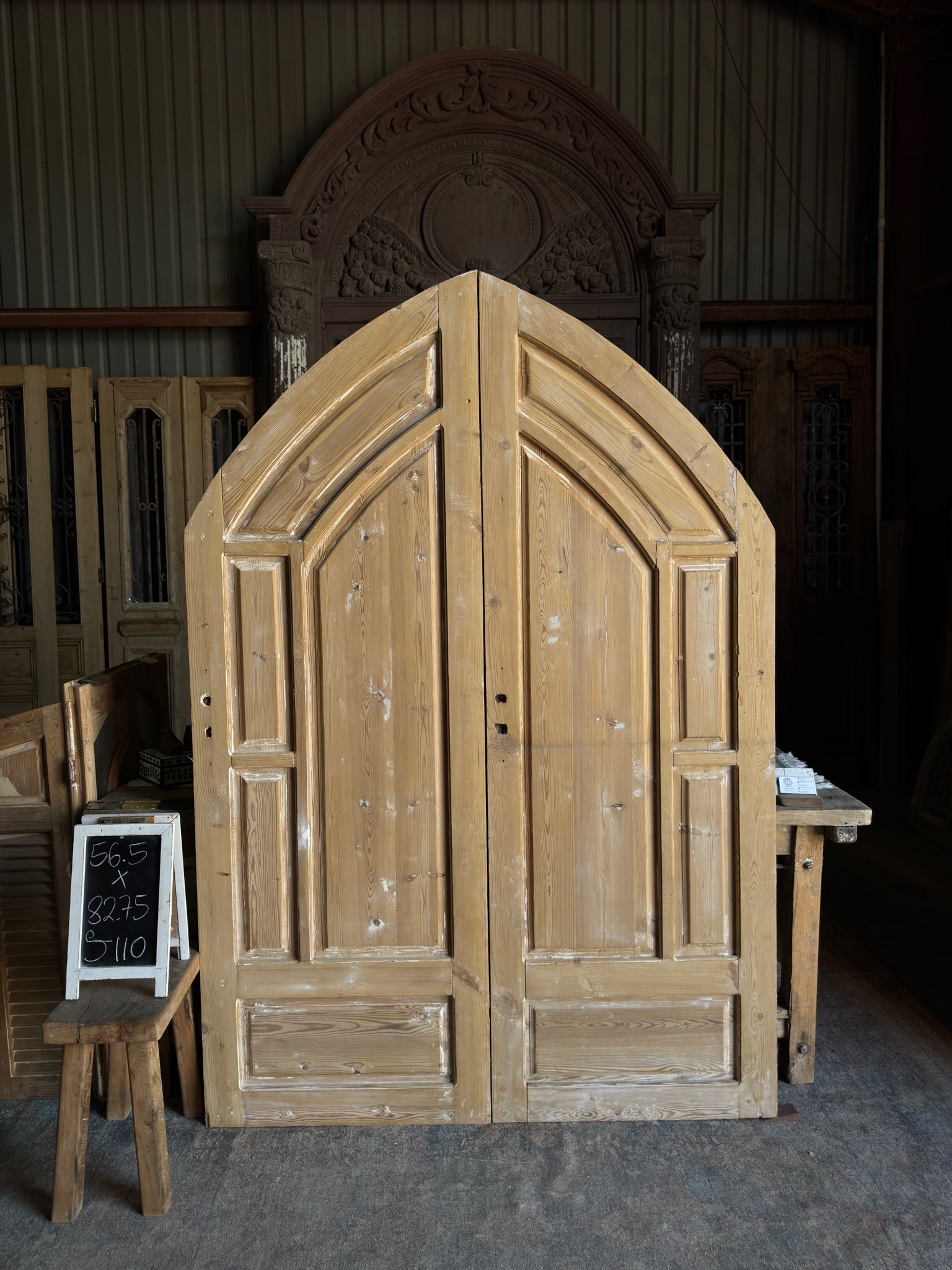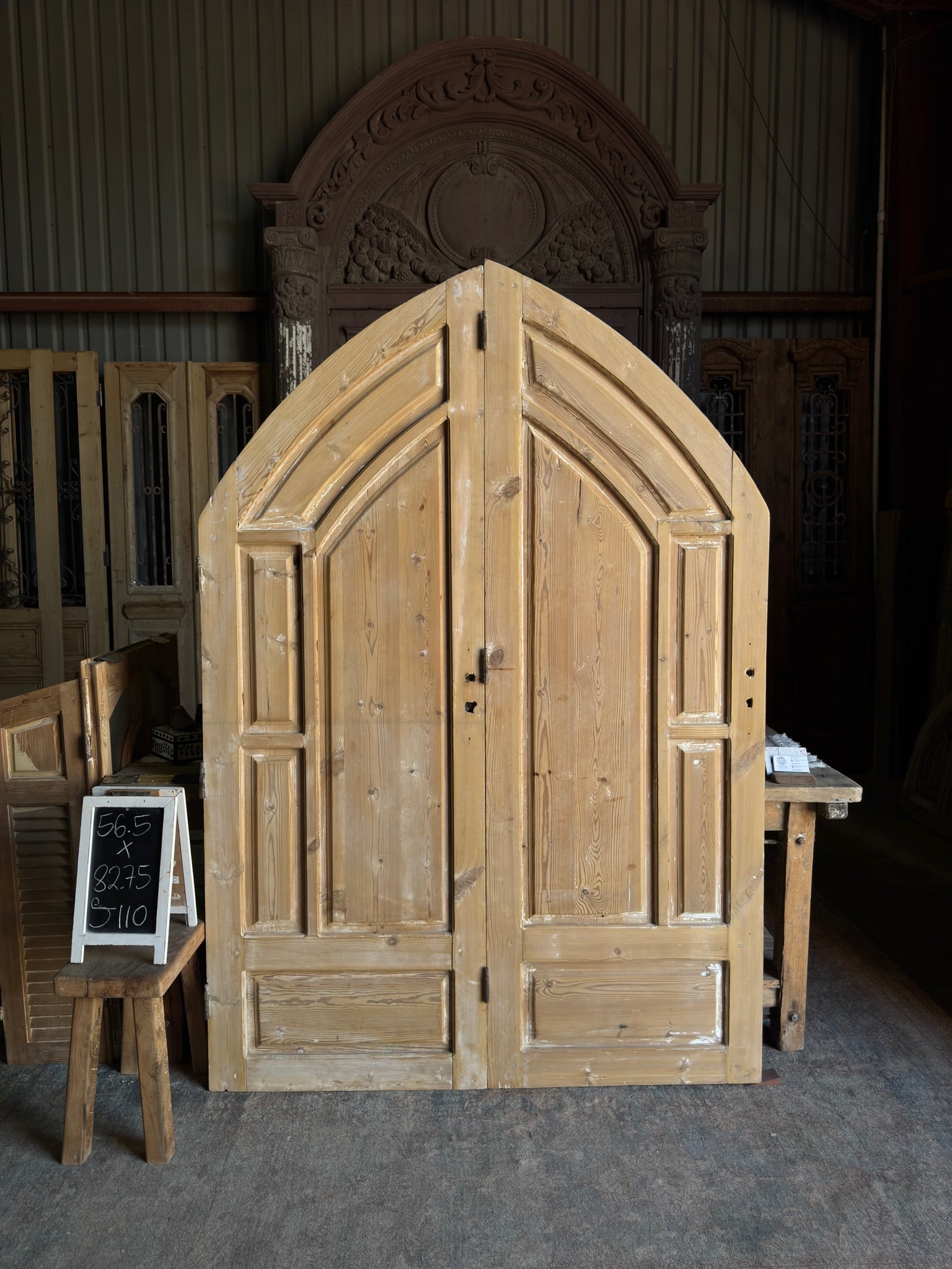 Antique Pine Arched French Doors - 56.5x82.75 J110