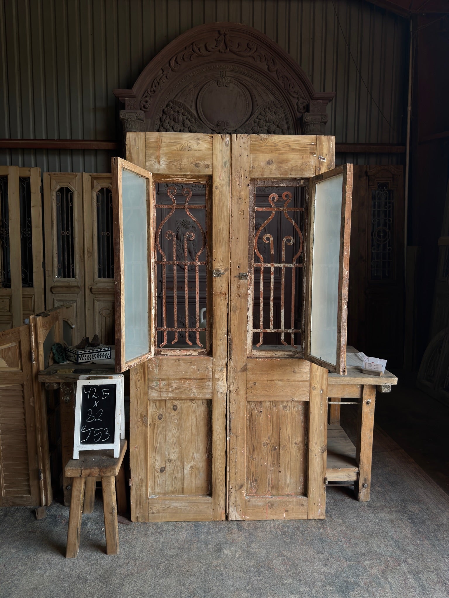 Carved Antique Iron French Double Doors - 42.5x82 J53