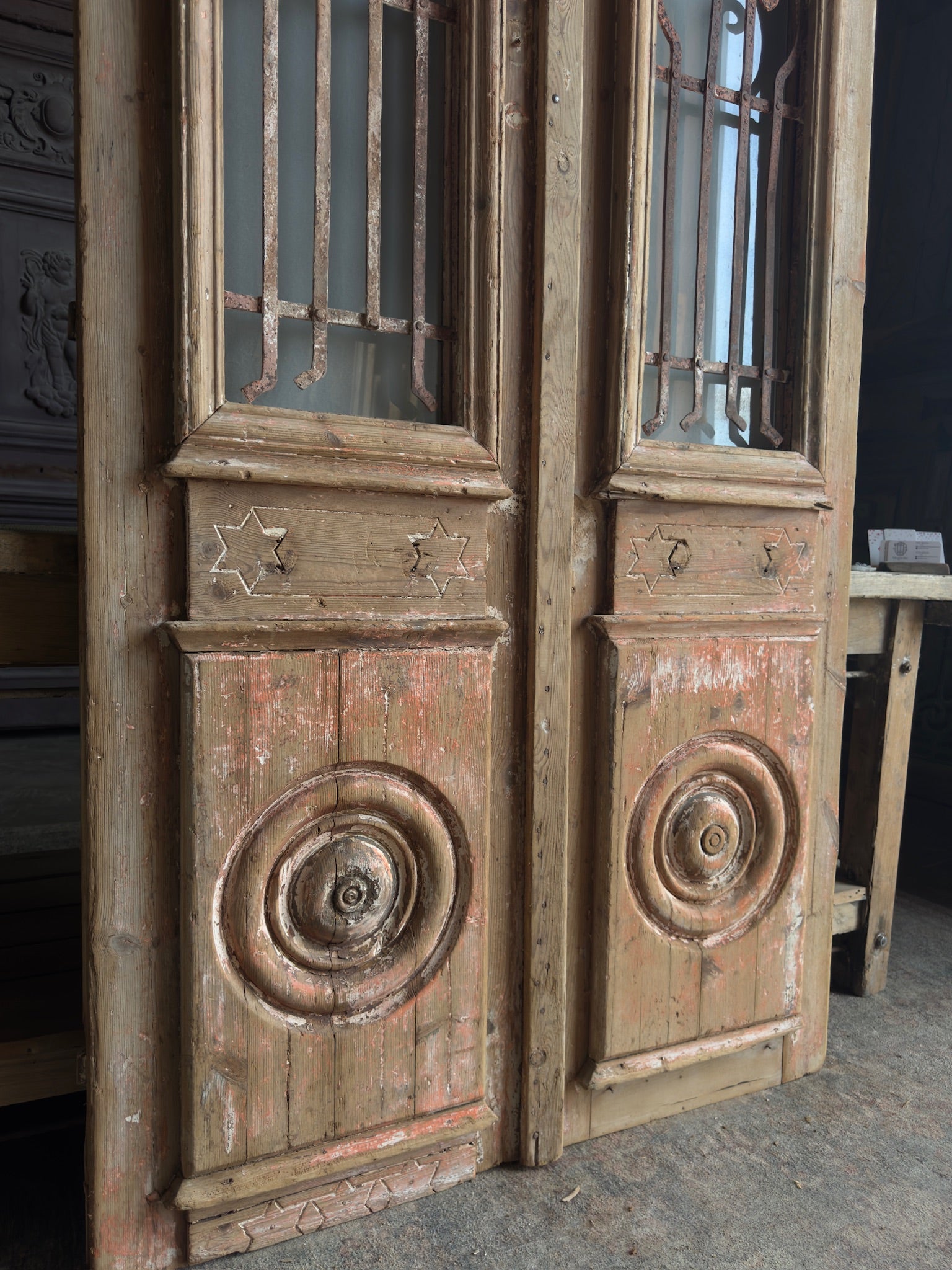 • Authentic 1800s Craftsmanship: Sourced from the Mediterranean, these antique doors are meticulously handcrafted from Baltic Pine, ensuring every piece is a genuine part of European history.