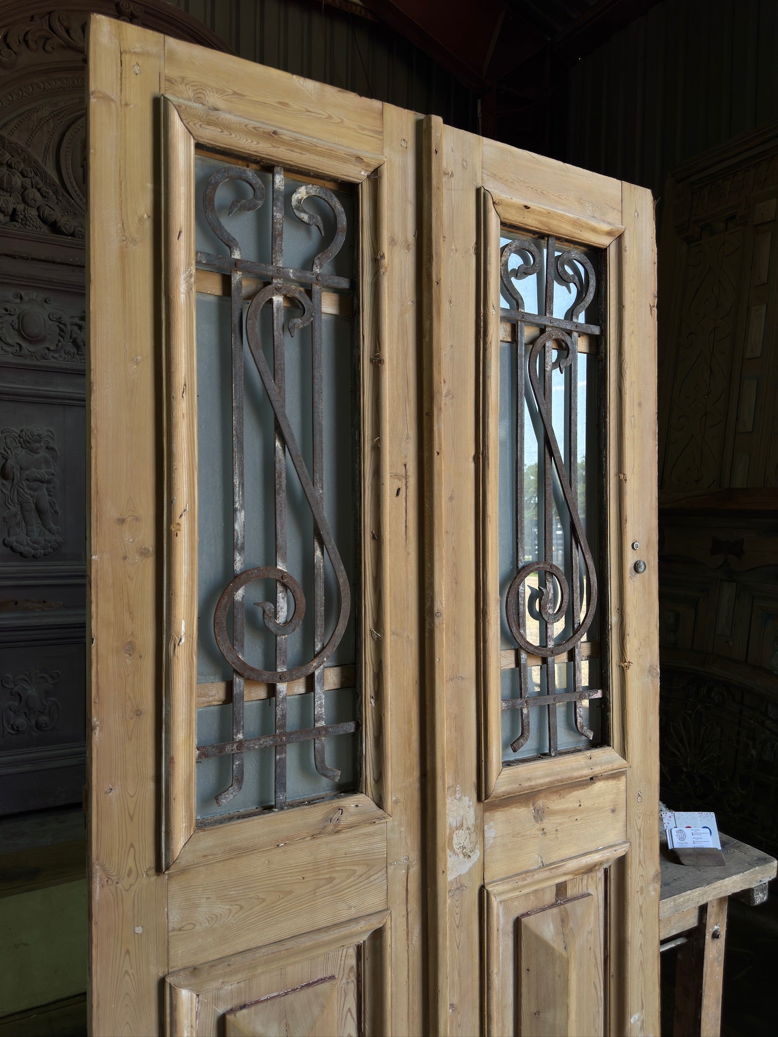 Elevate your home with the timeless elegance of authentic antique Baltic Pine doors sourced from the heart of the Mediterranean. Each door, hand-carved in the 19th Century and adorned with intricate iron and glass detailing, brings a distinct blend of vintage charm, French country décor sensibilities, and storied history into your space.