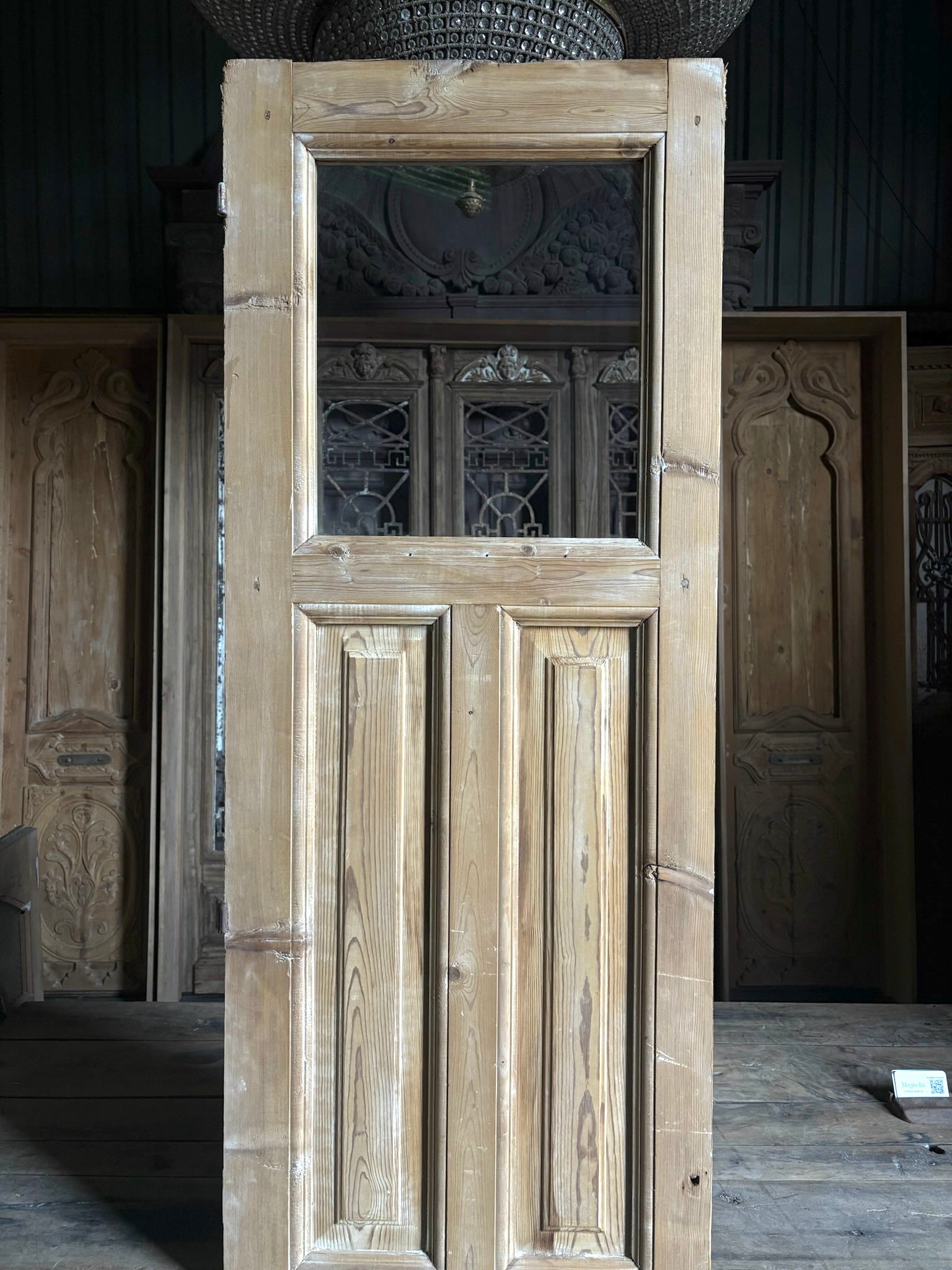 Elevate your home with the timeless elegance of authentic antique Baltic Pine doors sourced from the heart of the Mediterranean. Each door, hand-carved in the 19th Century and adorned with intricate iron and glass detailing, brings a distinct blend of vintage charm, French country décor sensibilities, and storied history into your space.