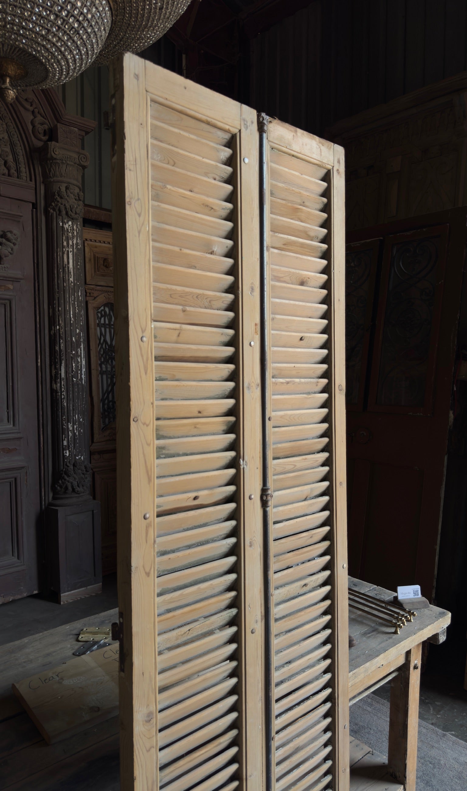 European French Antique Louvered Shutters - 25x85 - L414