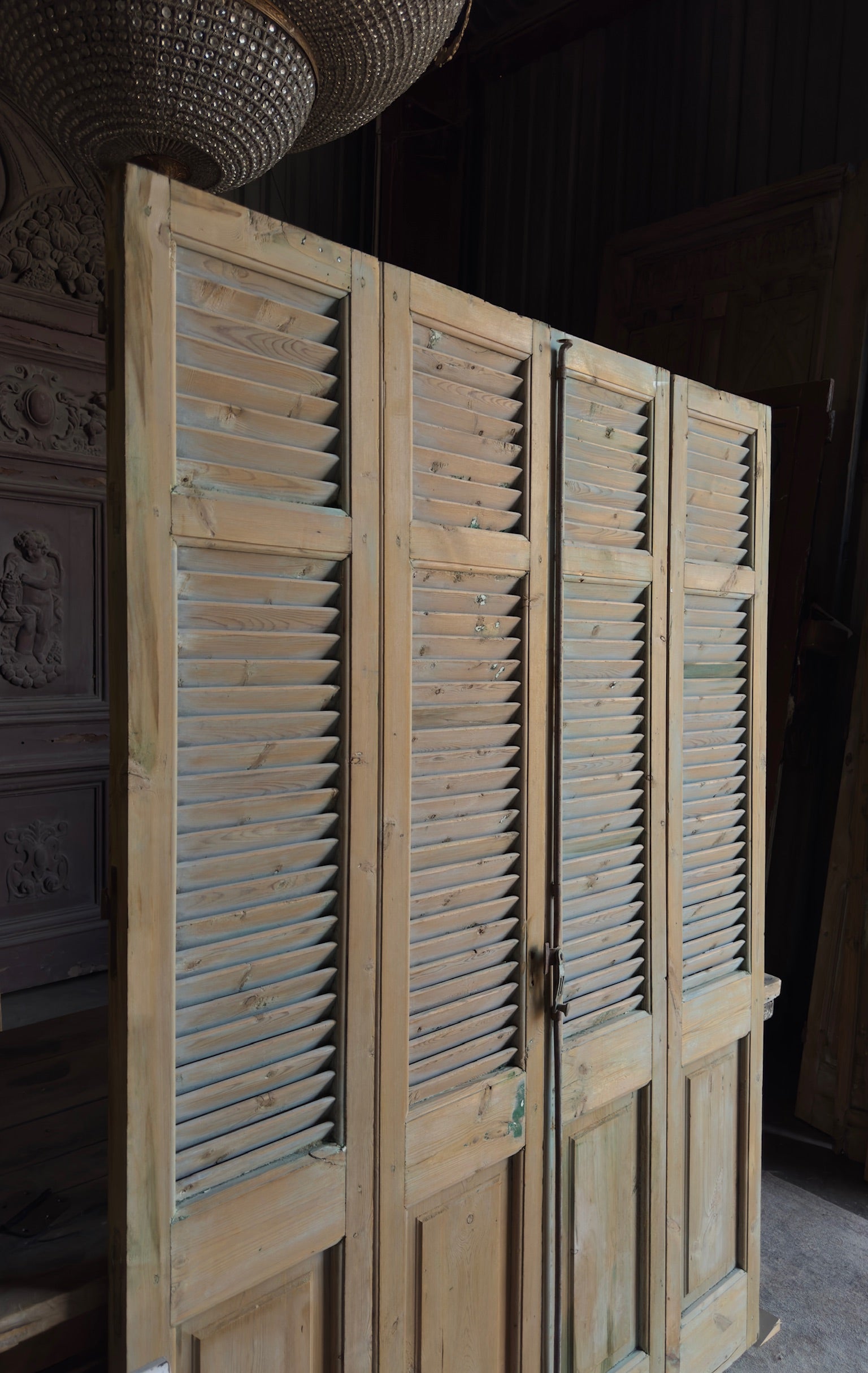 European French Antique Louvered Shutters - 59.5x83 - L413