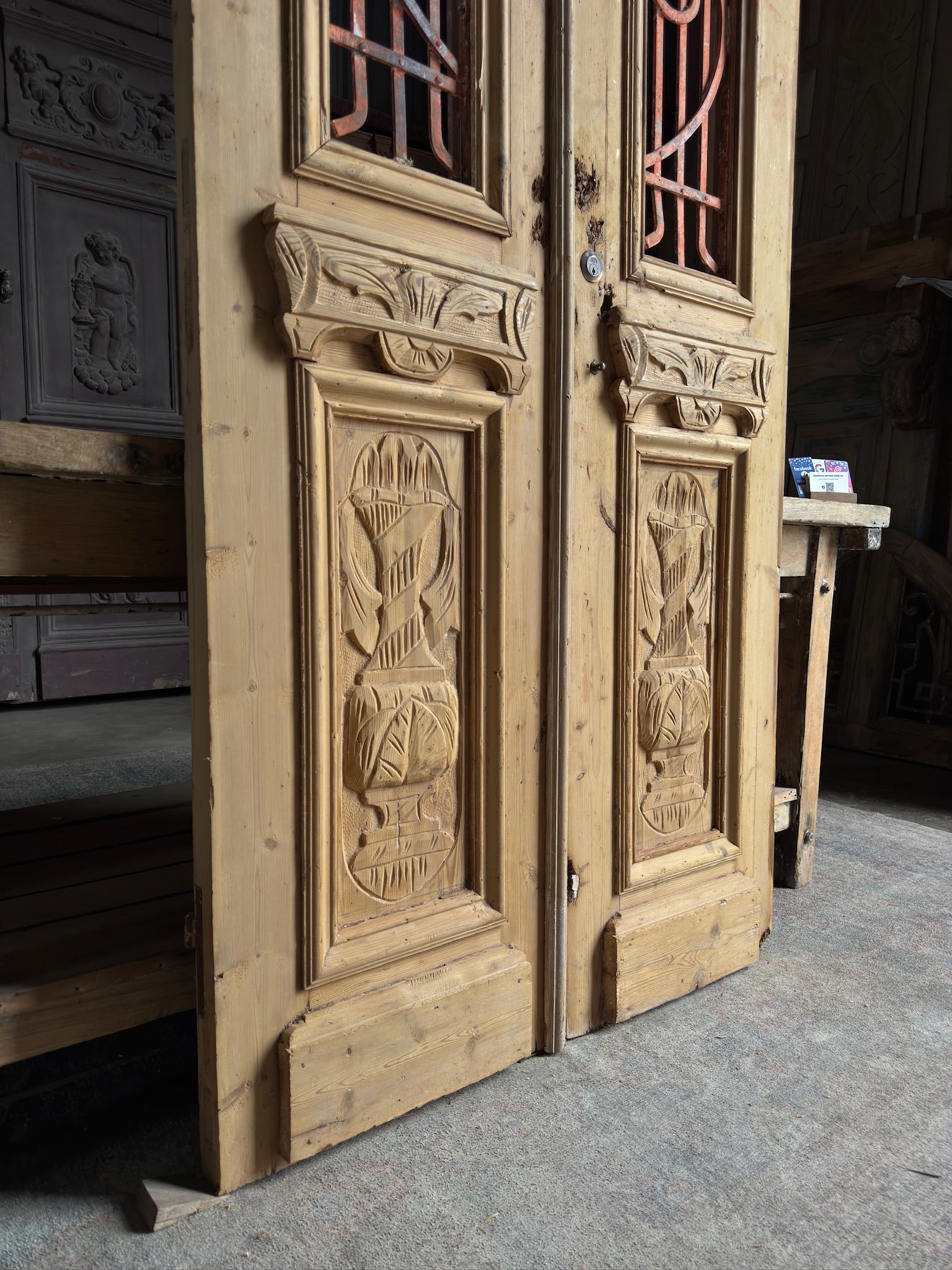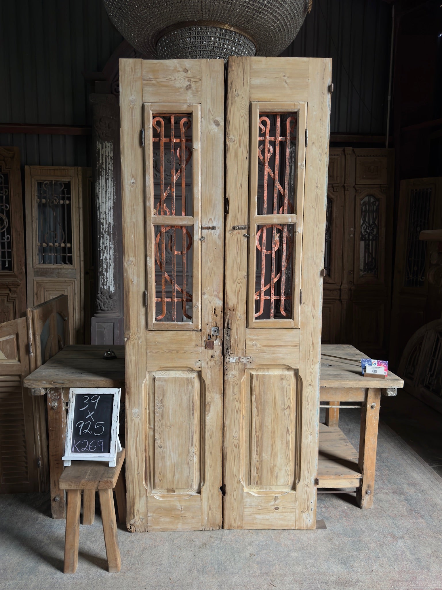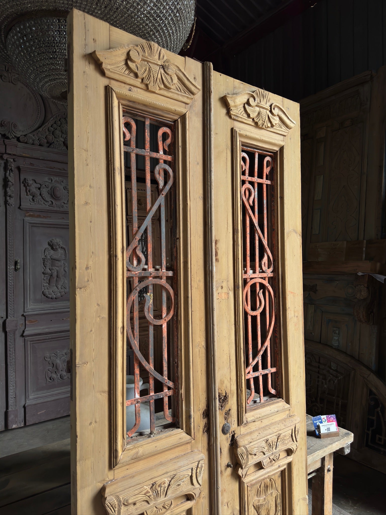 Elevate your home with the timeless elegance of authentic antique Baltic Pine doors sourced from the heart of the Mediterranean. Each door, hand-carved in the 19th Century and adorned with intricate iron and glass detailing, brings a distinct blend of vintage charm, French country décor sensibilities, and storied history into your space.