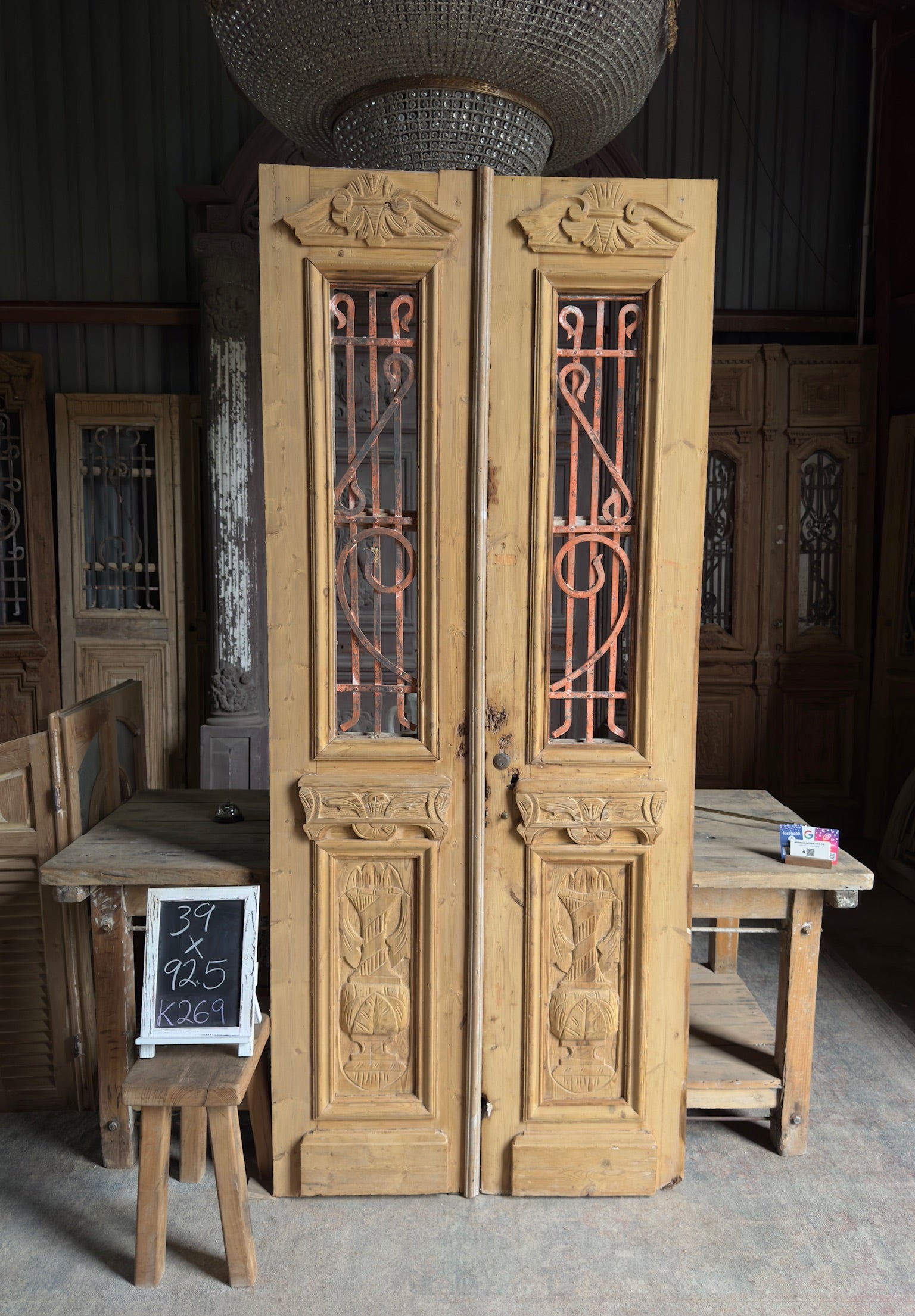 Hand Carved Antique Iron Double Doors - 39x92.5 K269