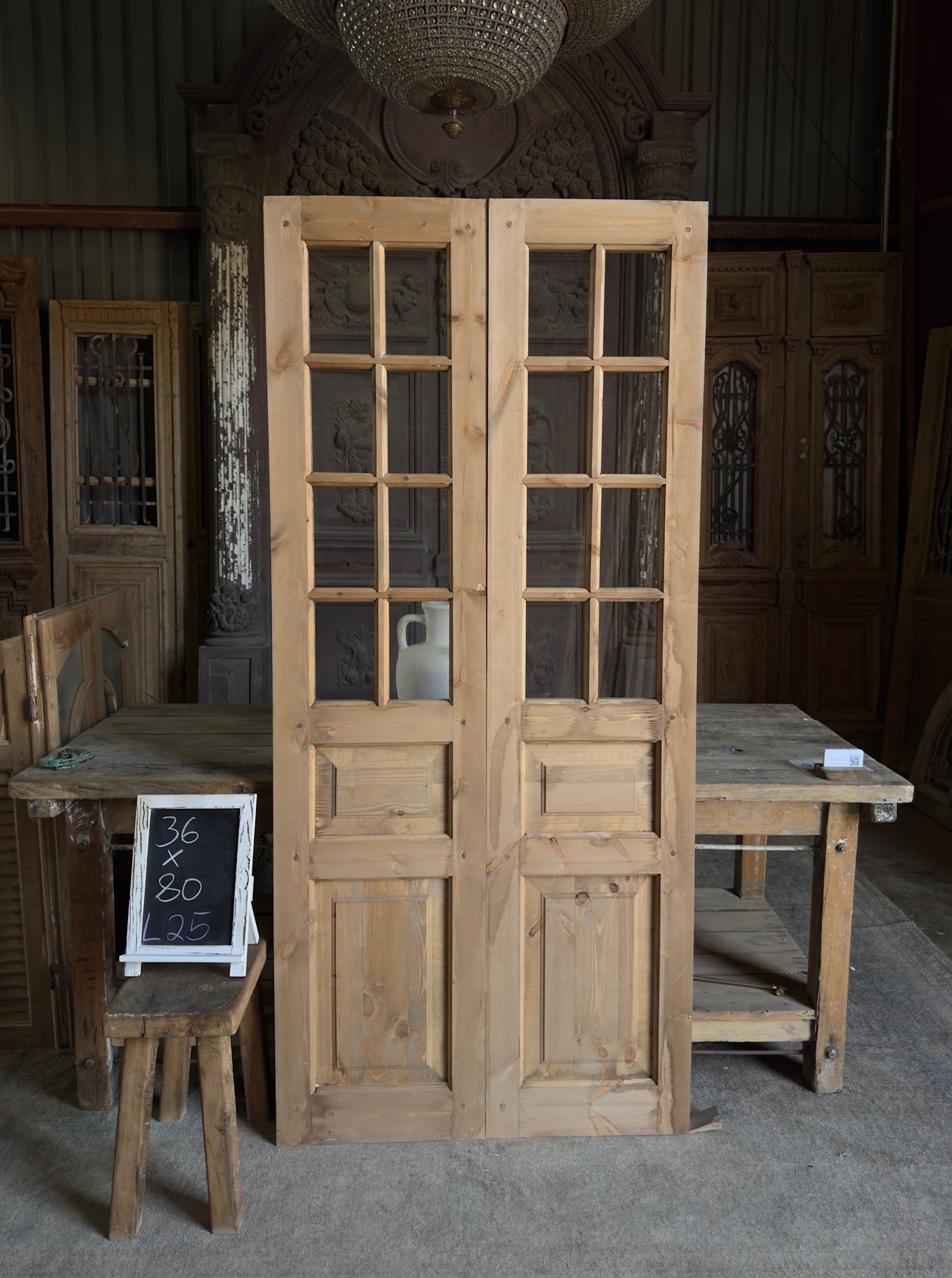 Our doors are sold as pictured and will require professional installation, as well as possible adjustments to fit your space. Glass may need to be sourced and installed separately. Additional photos are available upon request.