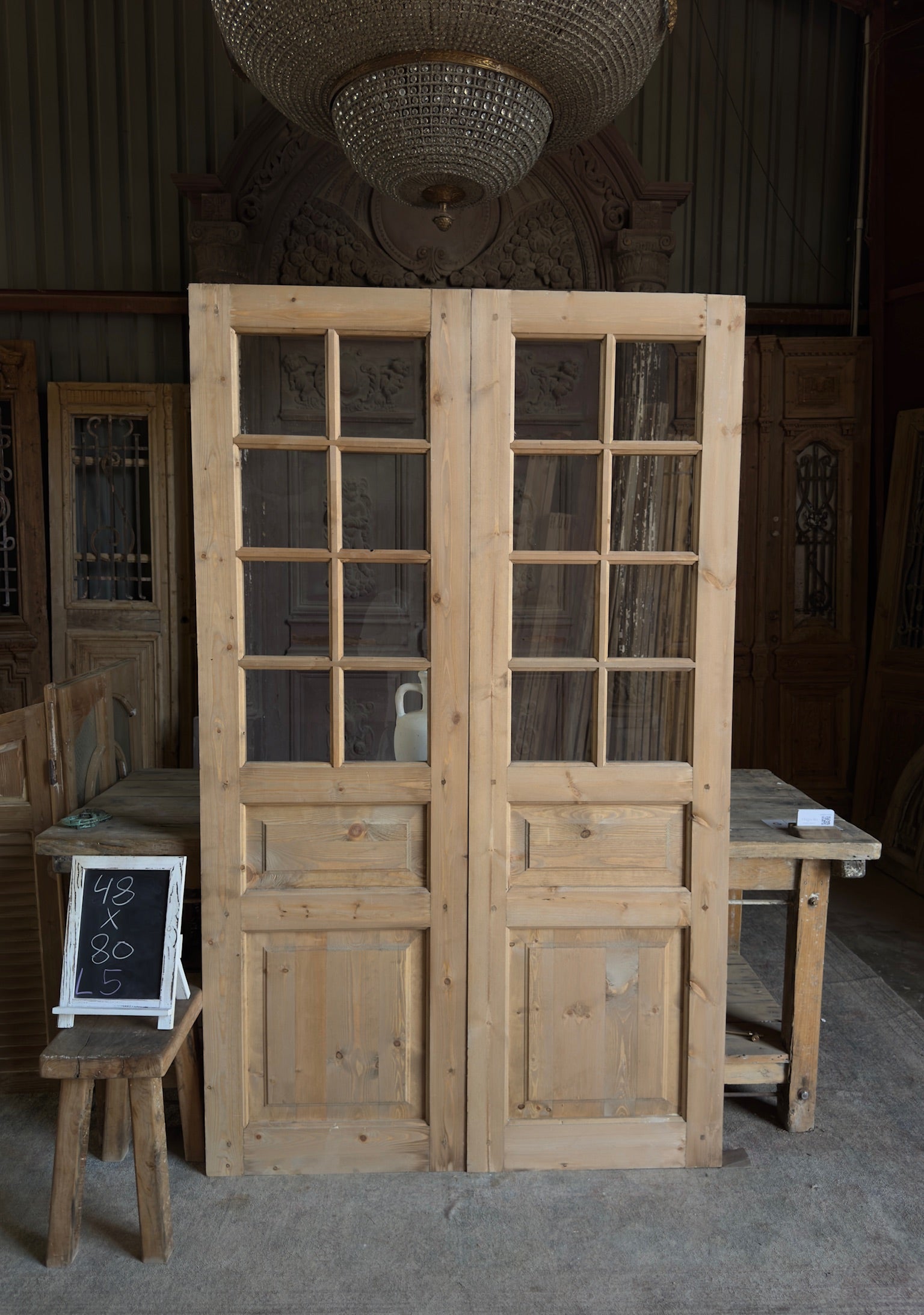 Our doors are sold as pictured and will require professional installation, as well as possible adjustments to fit your space. Glass may need to be sourced and installed separately. Additional photos are available upon request.