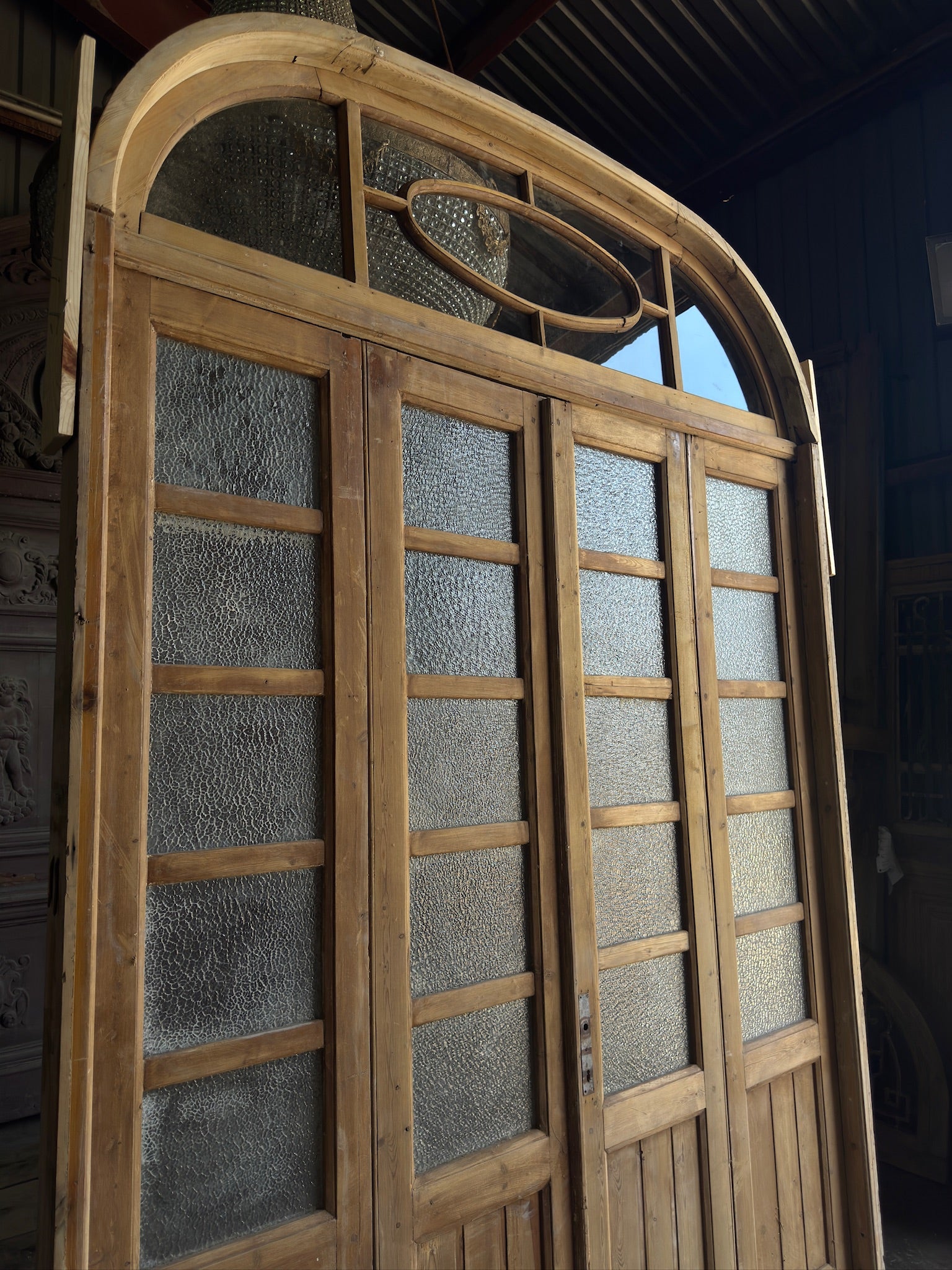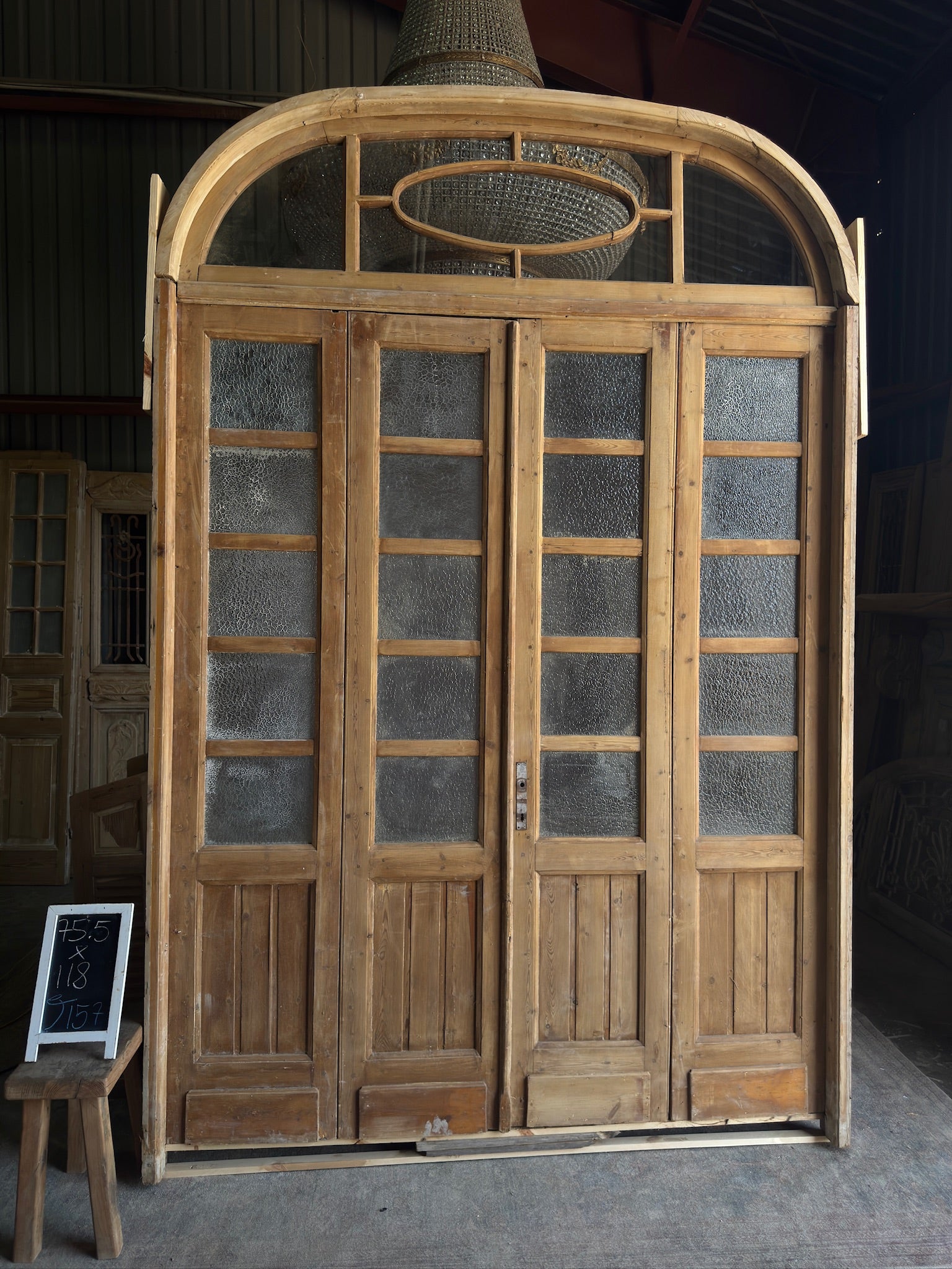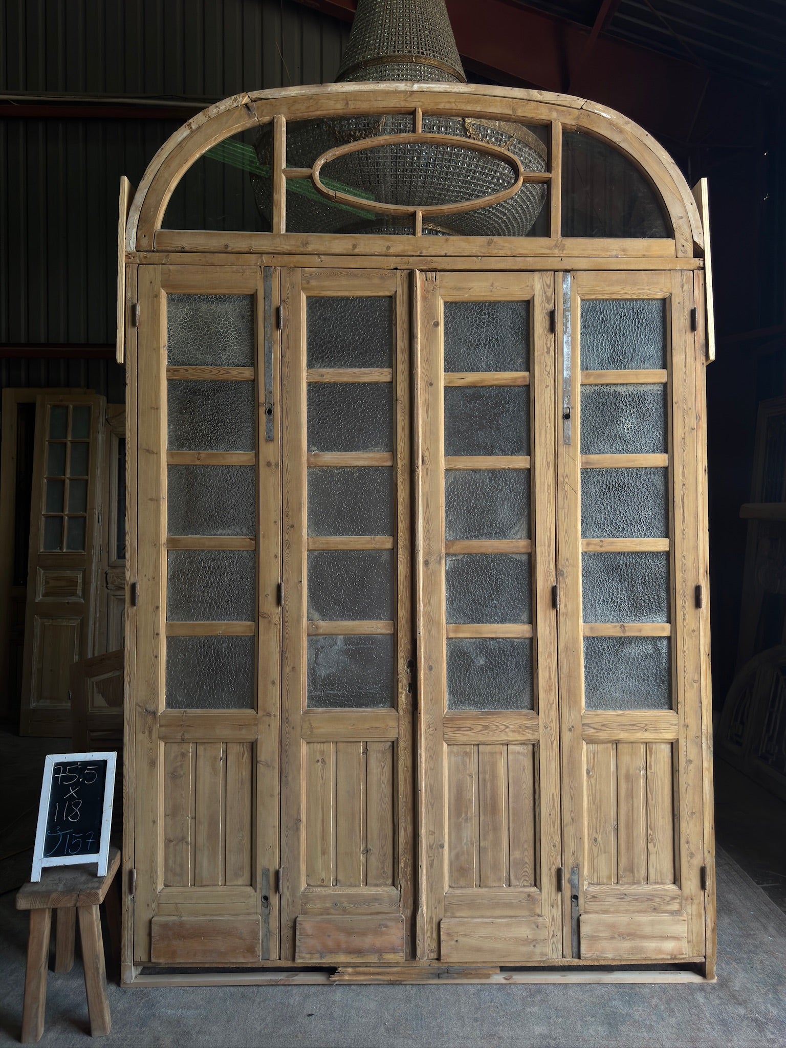 Large Antique Bi-Fold French Door Unit with Arched Transom - 75.5x118 J157