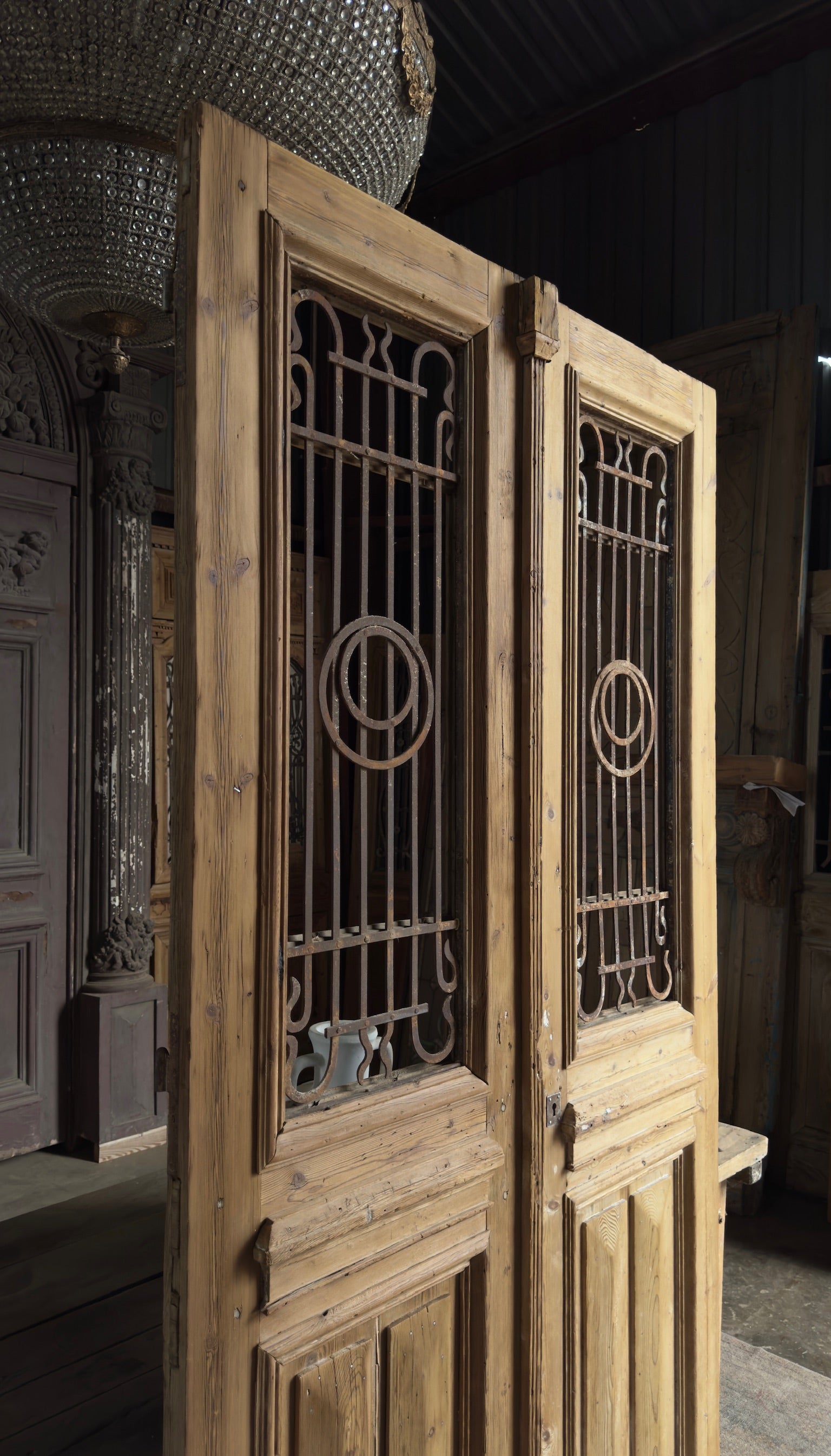 Elevate your home with the timeless elegance of authentic antique Baltic Pine doors sourced from the heart of the Mediterranean. Each door, hand-carved in the 19th Century and adorned with intricate iron and glass detailing, brings a distinct blend of vintage charm, French country décor sensibilities, and storied history into your space.