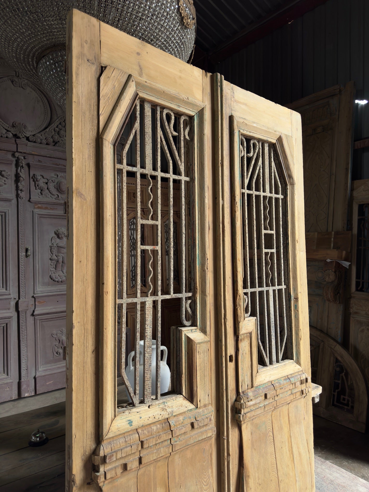 Elevate your home with the timeless elegance of authentic antique Baltic Pine doors sourced from the heart of the Mediterranean. Each door, hand-carved in the 19th Century and adorned with intricate iron and glass detailing, brings a distinct blend of vintage charm, French country décor sensibilities, and storied history into your space.