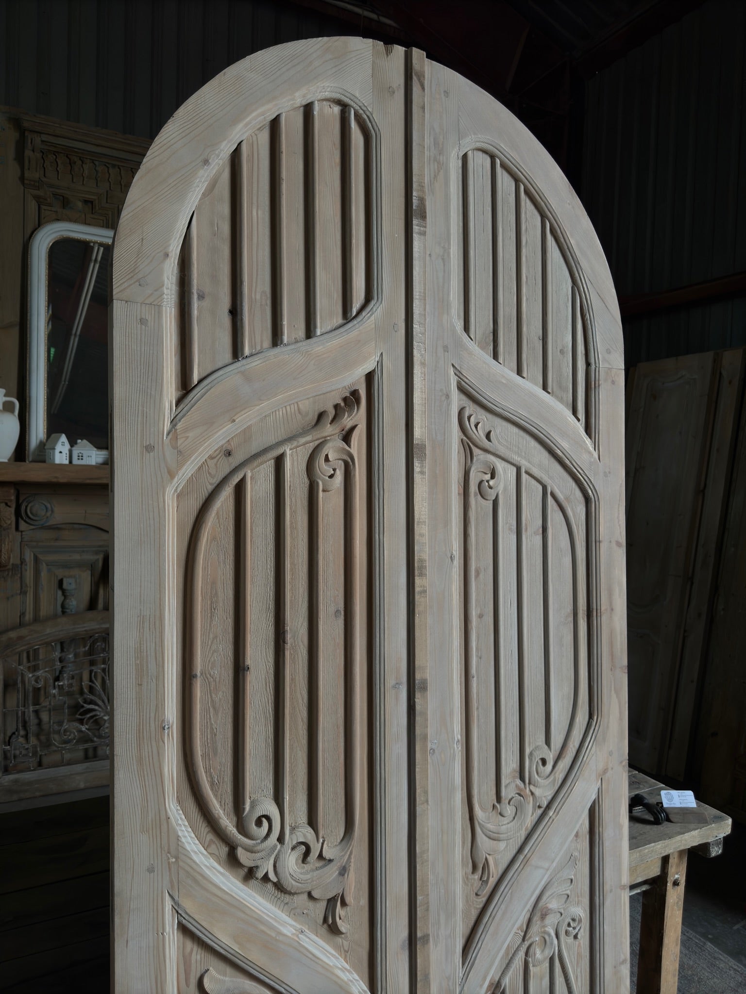 (The Merlin) Handrcrafted Arched Baltic Pine French Doors - 43.5x96.5 H242
