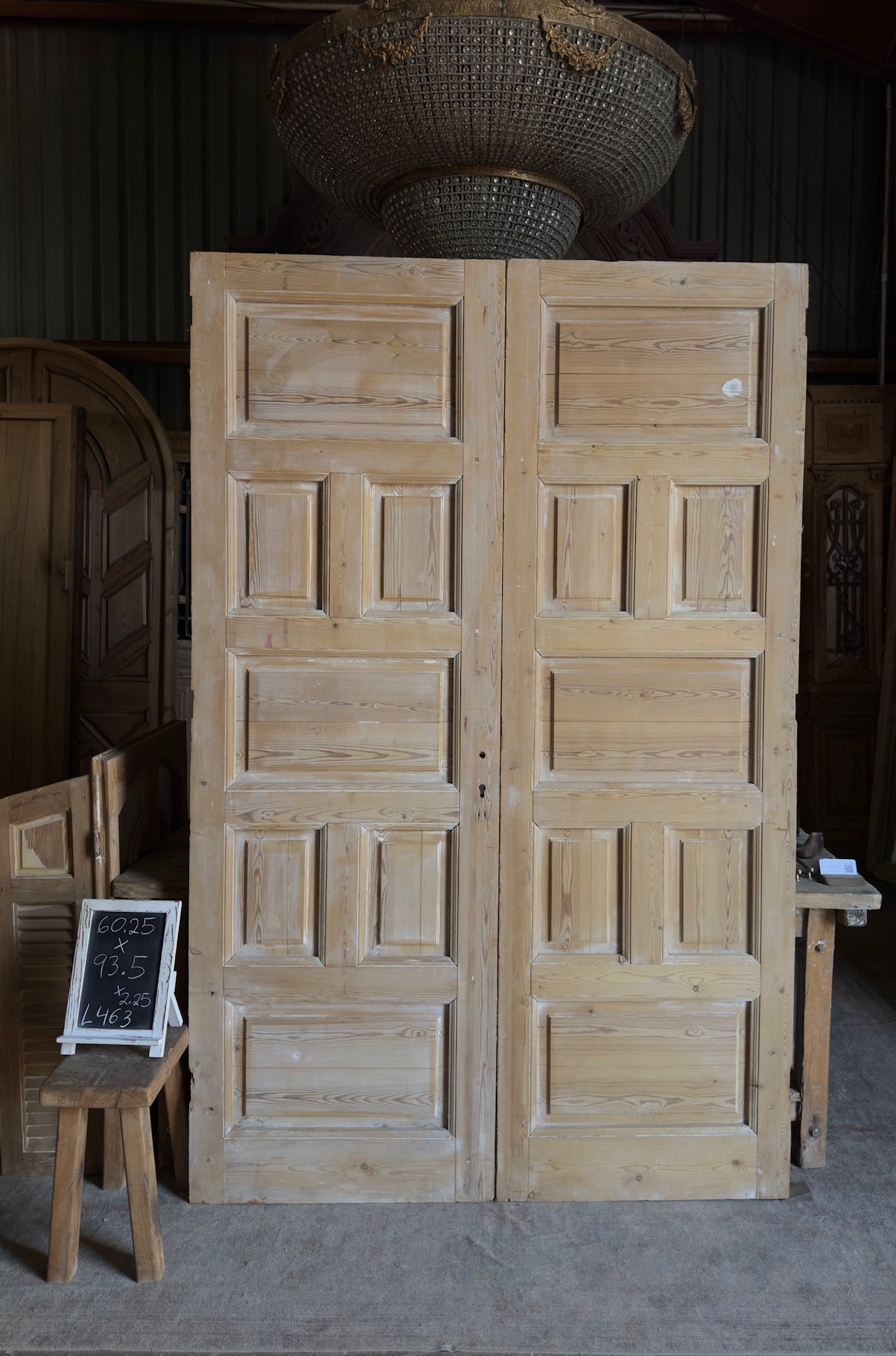 Thick Antique Paneled Solid French Doors - 60.25x93.5 - L463