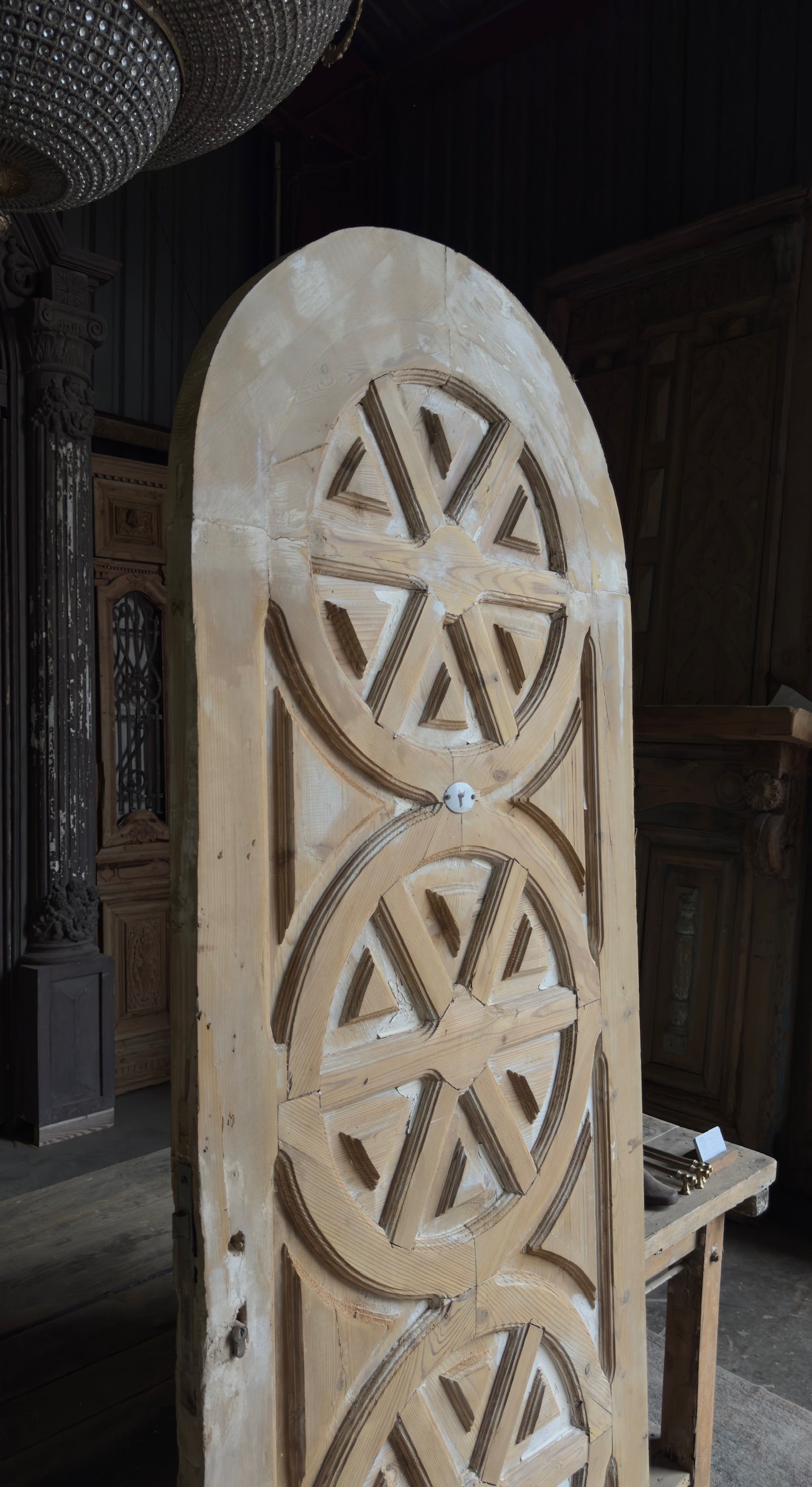 Triple Rosette Antique Arched Solid Single Door - 32x87 - L146